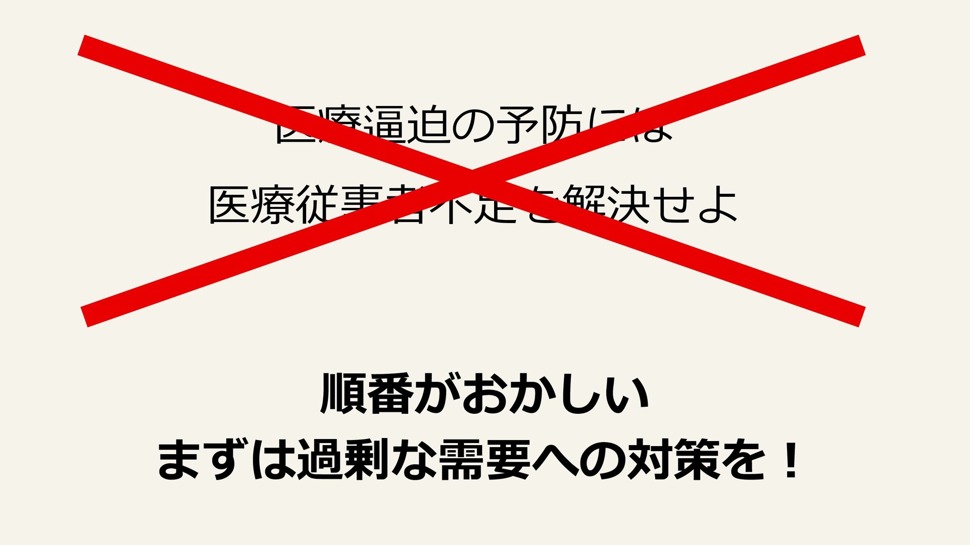 医療逼迫の予防には 医療従事者不足を解決せよ 順番がおかしい まずは過剰な需要への対策を!