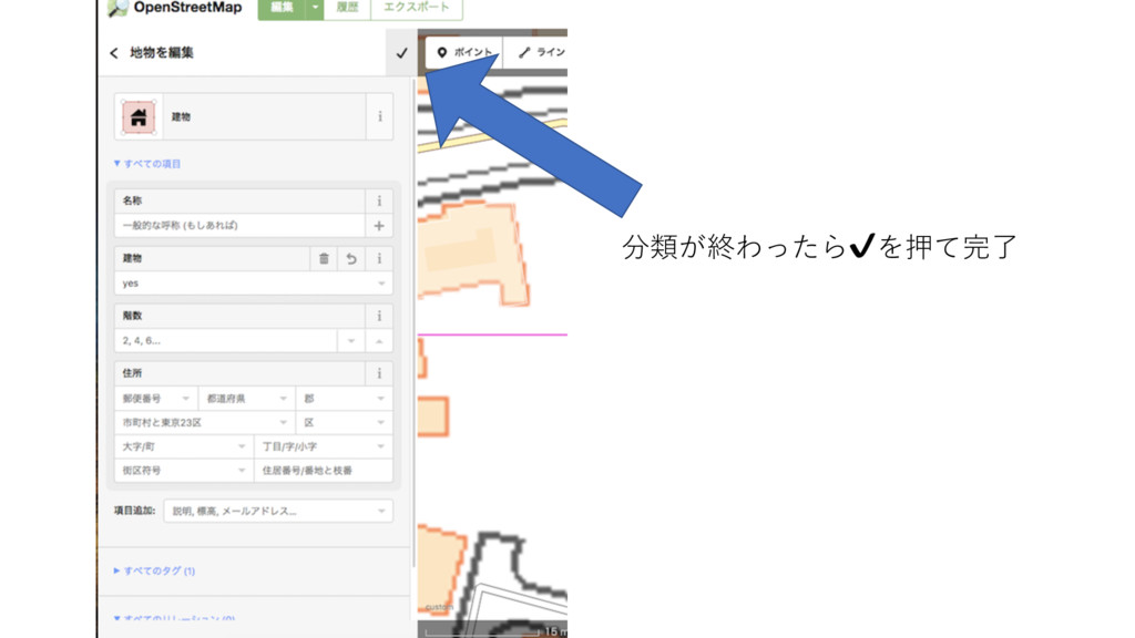 すべての建物をマッピング し終えたら保存をする。 ※すべて終わっていなくても こまめに保存をする。