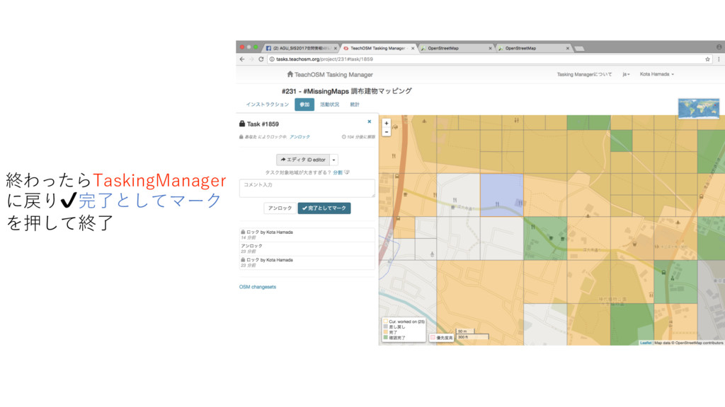 終わったらTaskingManager に戻り✔完了としてマーク を押して終了