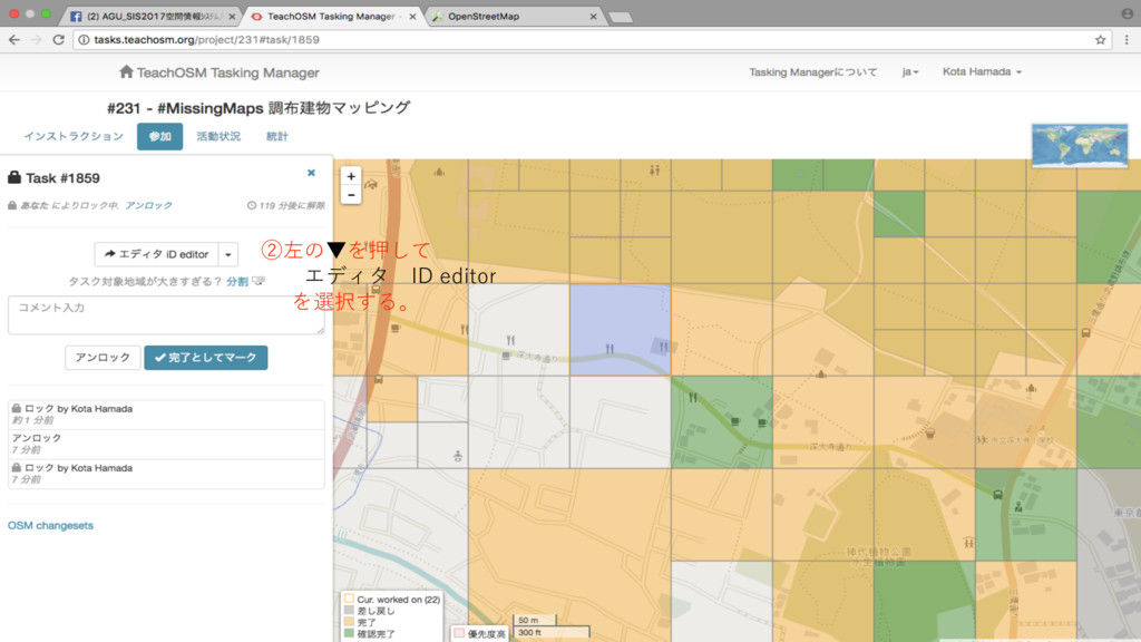 ↑②参加を押してマッピングを開始する。 ①まずログインをする。