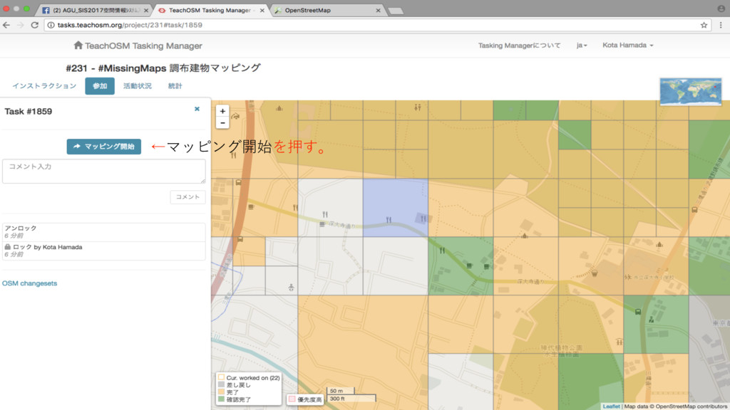 ↑②参加を押してマッピングを開始する。 ①まずログインをする。