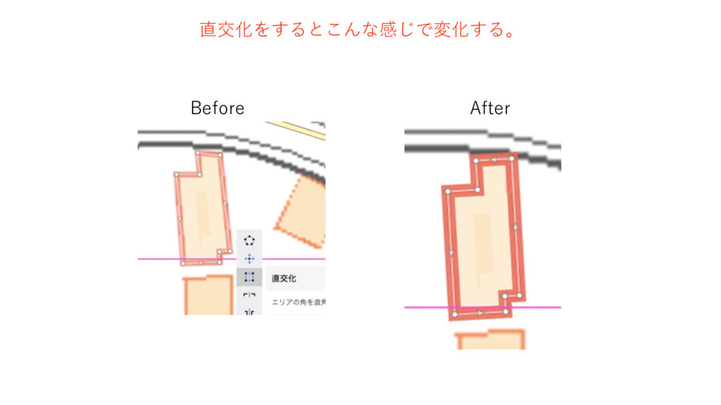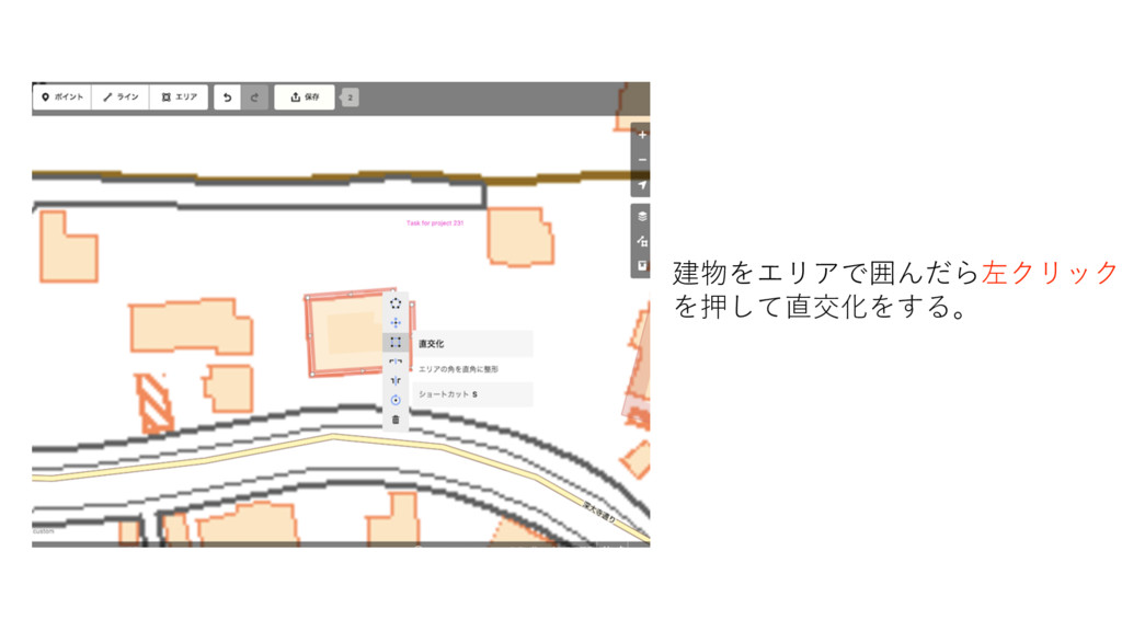 建物をエリアで囲んだら左クリック を押して直交化をする。