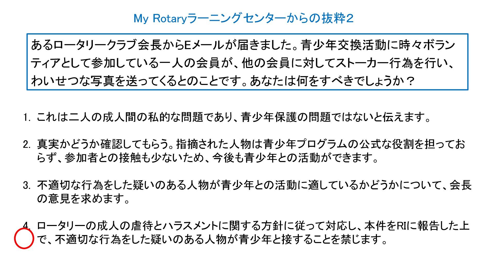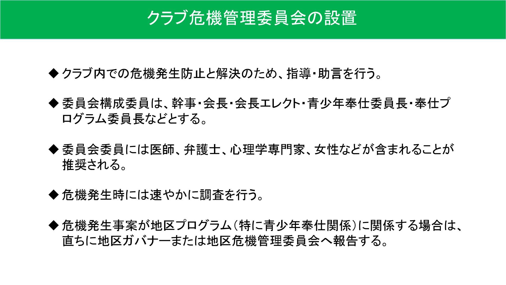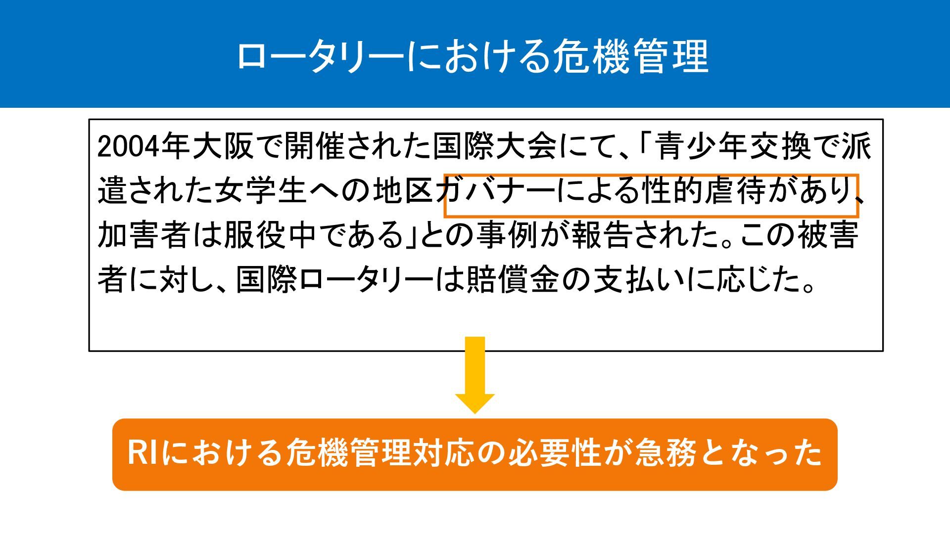 2720 Japan O.K. ロータリーEクラブ、2026年2月16日卓話として、国際ロータリー第2720地区 パストガバナー・日田ロータリークラブ・医療法人恒心会ぜぜ医院 理事長 膳所 和彦 氏に、地区危機管理委員会 出前セミナー「ロータリーにおける危機管理」でのお話で使用されていたをスライドにて提供いたします。