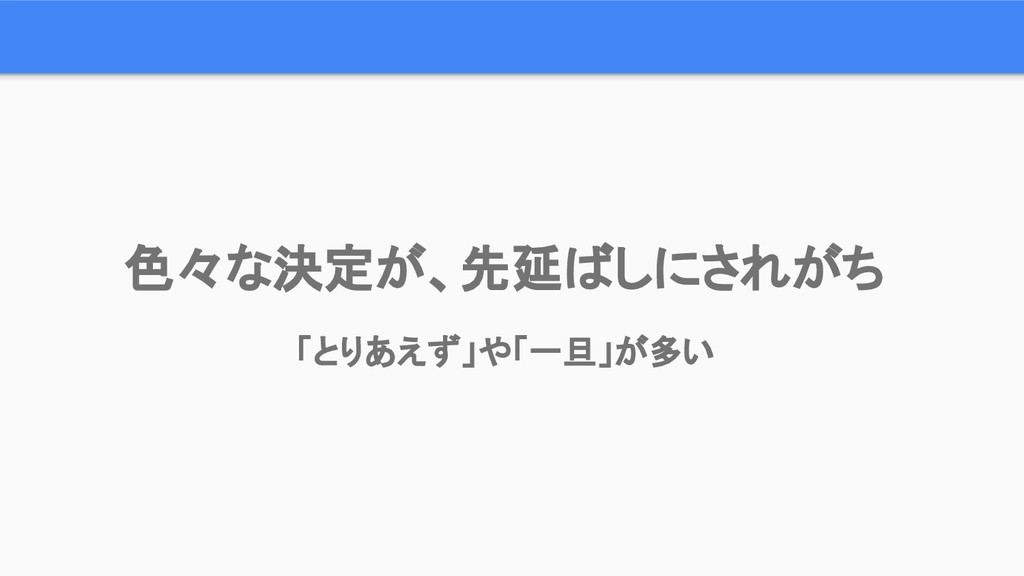 色々な決定が、先延ばしにされがち 「とりあえず」や「一旦」が多い