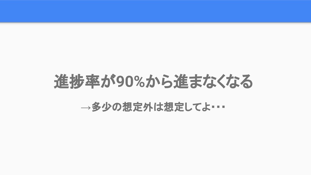 進捗率が90%から進まなくなる →多少の想定外は想定してよ・・・