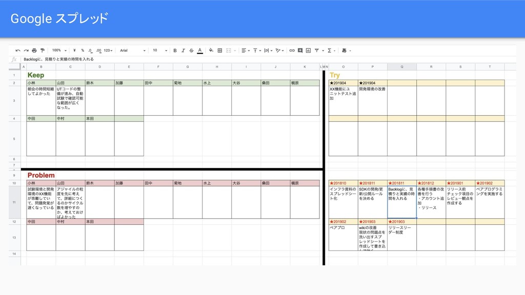 失敗の共有、改善 振り返り(KPT)を 定期的に実施