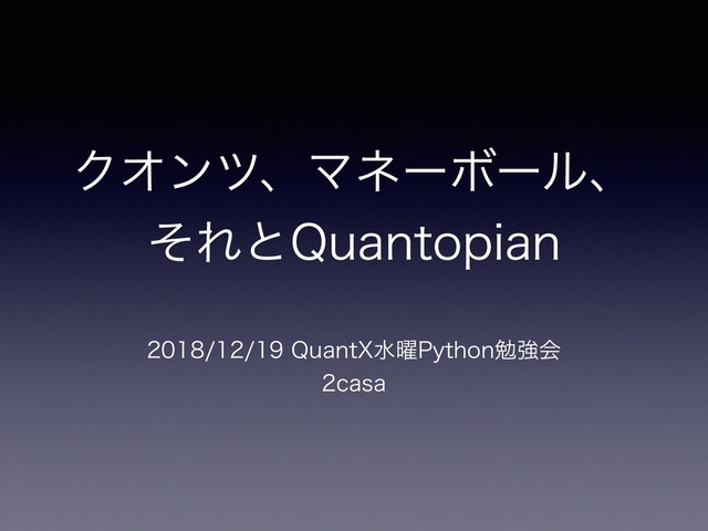 2018/12/19(Wed)に開催された、「QuantX水曜Python勉強会 〜投資アルゴリズム開発〜」でのLT発表資料です。 https://python-algo.connpass.com/event/111356/