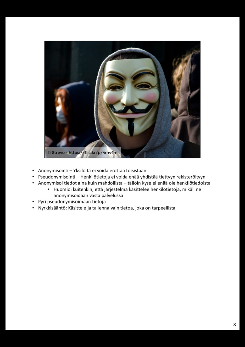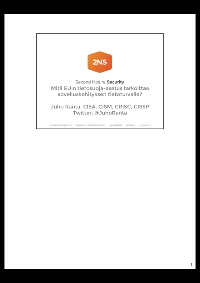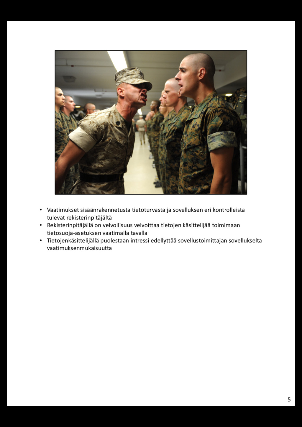 • Henkilötietojen käsittelijä = Taho, joka käsittelee henkilötietoja rekisterinpitäjän lukuun (esim. CRM, jota Palvelu Oy tarjoaa) • Sovelluskehittäjä = Taho, joka kehittää sovelluksen käsittelijälle • Rekisterinpitäjä on aina vastuussa henkilötietojen turvallisuudesta • Rekisterinpitäjä välittää vaatimukset eteenpäin henkilötietojen käsittelijälle • Henkilötietojen käsittelijällä intressi edellyttää samoja vaatimuksia sovelluskehittäjältä 3