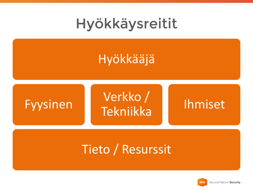 Hyökkäysreitit Hyökkääjä Fyysinen Verkko / Tekniikka Ihmiset Tieto / Resurssit