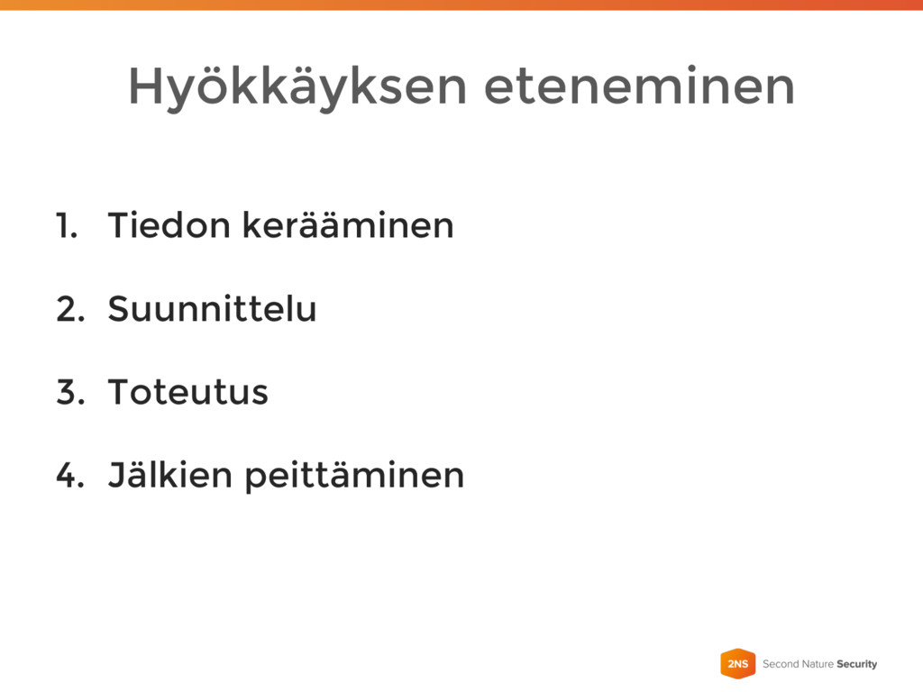 Hyökkäyksen eteneminen 1. Tiedon kerääminen 2. Suunnittelu 3. Toteutus 4.