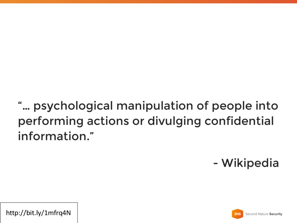 “… psychological manipulation of people into performing actions or divulging