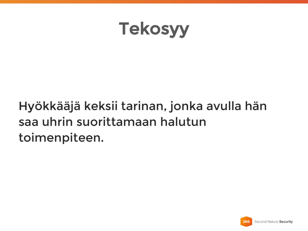 Tekosyy Hyökkääjä keksii tarinan, jonka avulla hän saa uhrin suorittamaan