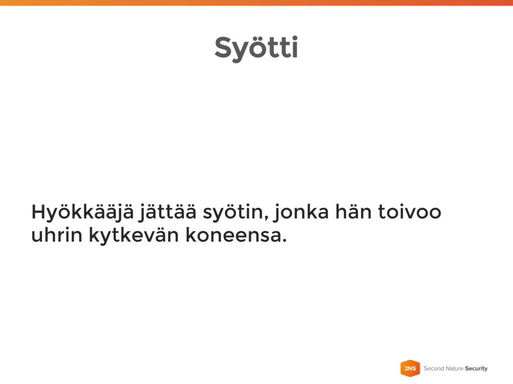 Syötti Hyökkääjä jättää syötin, jonka hän toivoo uhrin kytkevän koneensa.