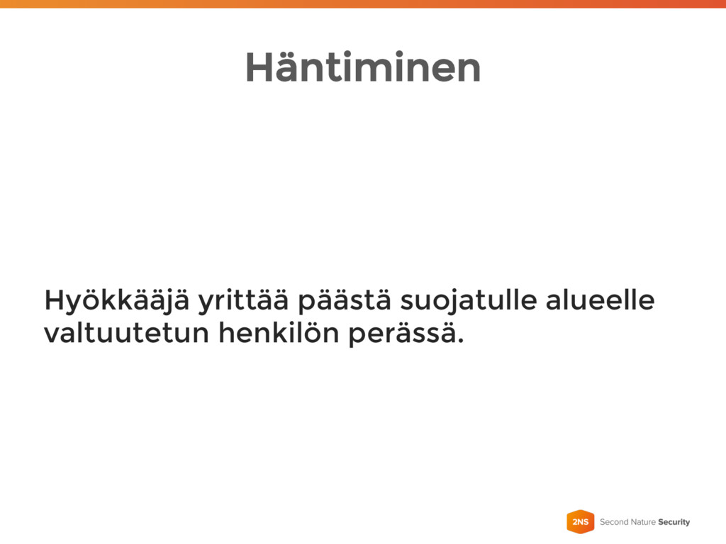 Häntiminen Hyökkääjä yrittää päästä suojatulle alueelle valtuutetun henkilön perässä.