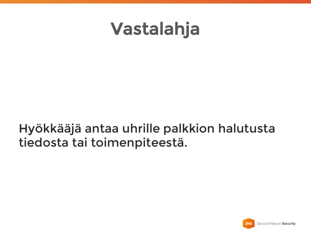 Vastalahja Hyökkääjä antaa uhrille palkkion halutusta tiedosta tai toimenpiteestä.
