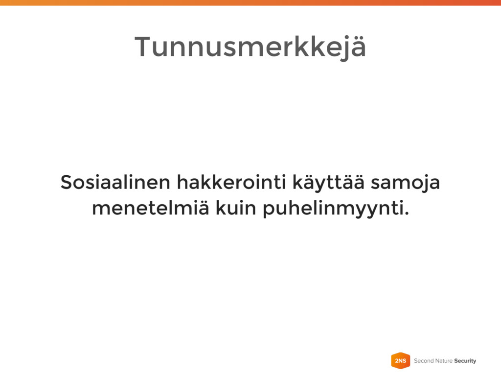 Tunnusmerkkejä Sosiaalinen hakkerointi käyttää samoja menetelmiä kuin puhelinmyynti.