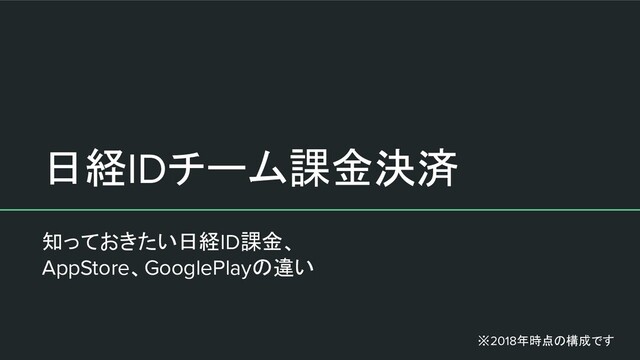日経IDチーム課金決済 知っておきたい日経ID課金、 AppStore、GooglePlayの違い ※2018年時点の構成です