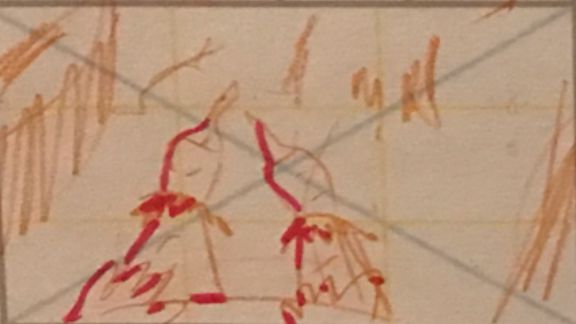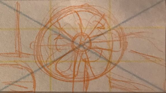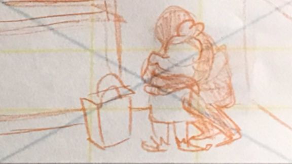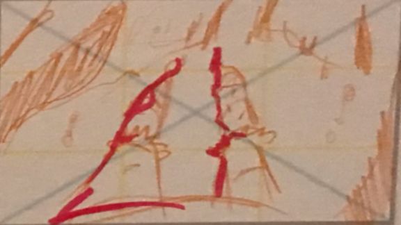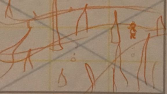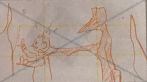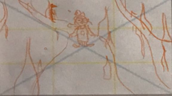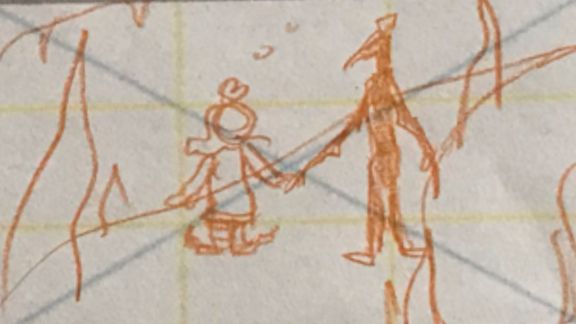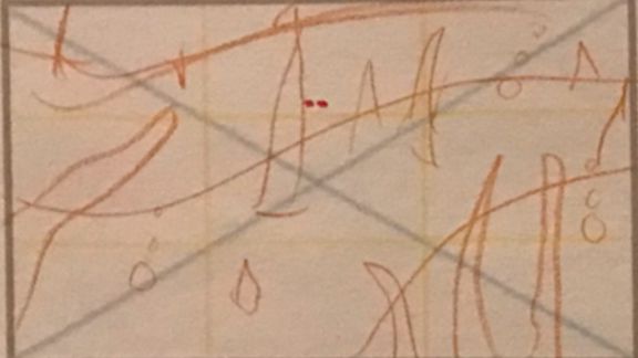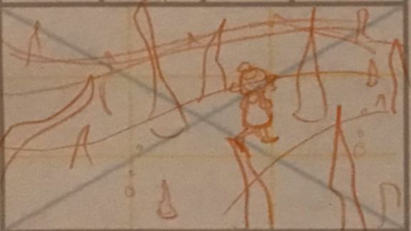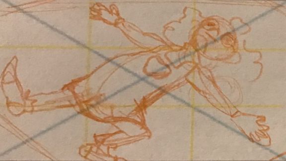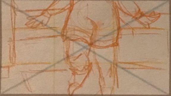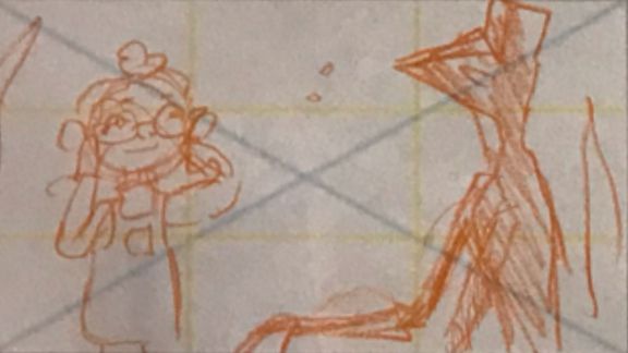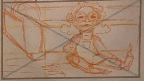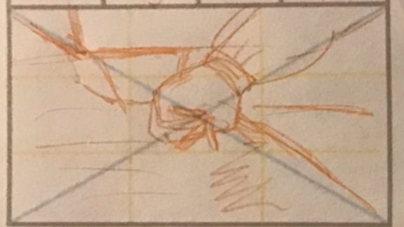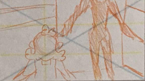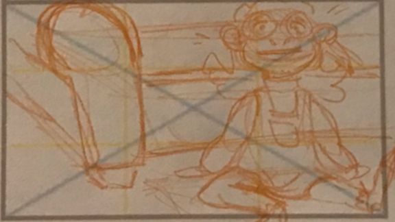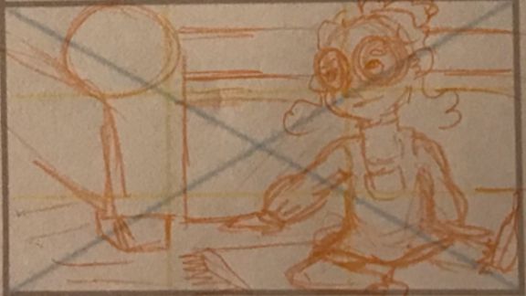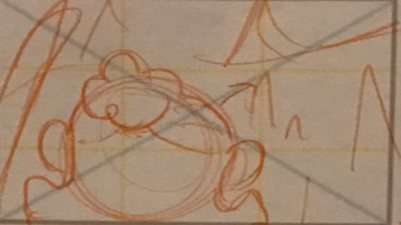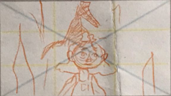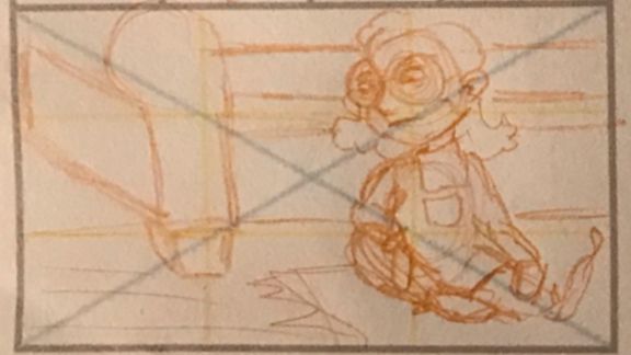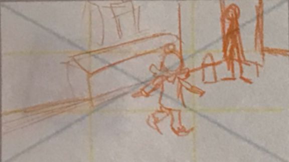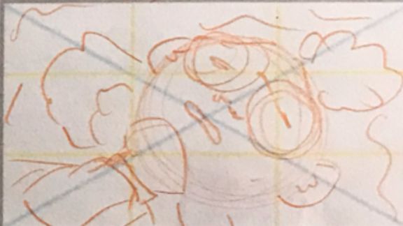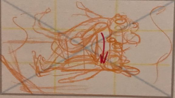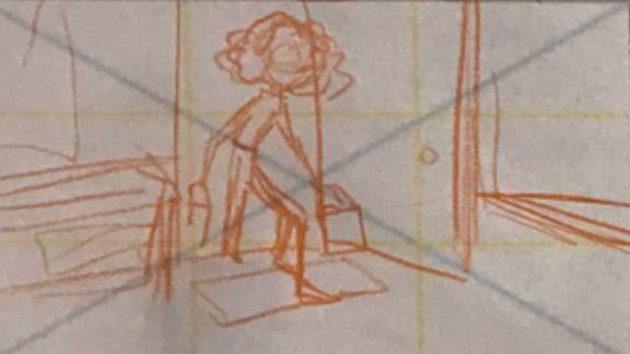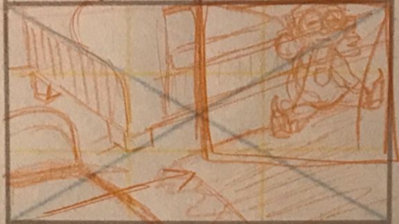 The original storyboard for my short film Dizzying World. Done on paper with an orange pencil