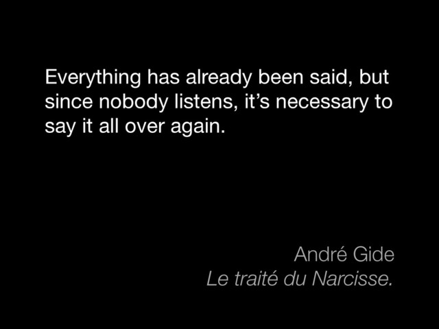 necessary to say it all over again. André Gide Le traité du Narcisse.