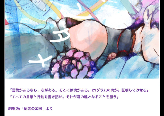 「言葉があるなら、心がある。そこには魂がある。21グラムの魂が。証明してみせろ」 「すべての言葉と行動を書き記せ。それが君の魂となることを願う」 劇場版:「屍者の帝国」より