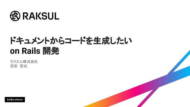 社外秘 Confidential ドキュメントからコードを生成したい on Rails 開発 ラクスル株式会社 宮田 聖也