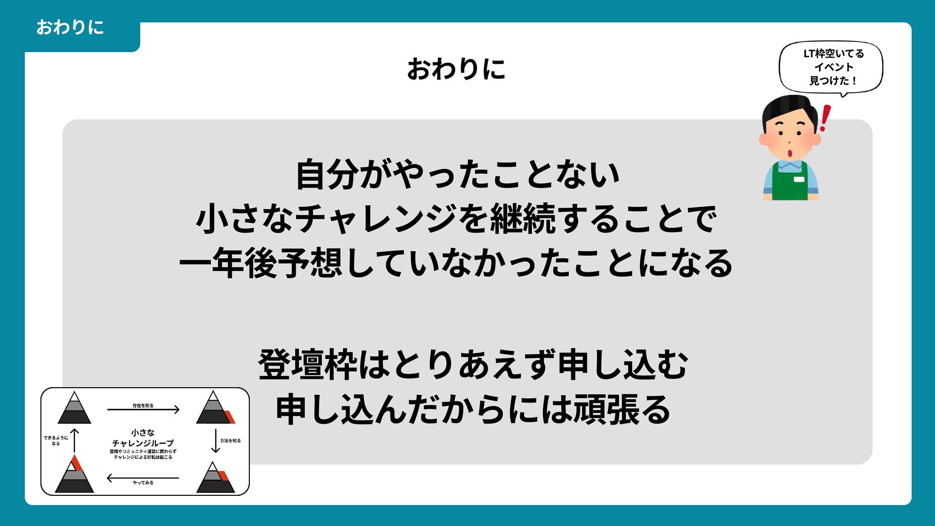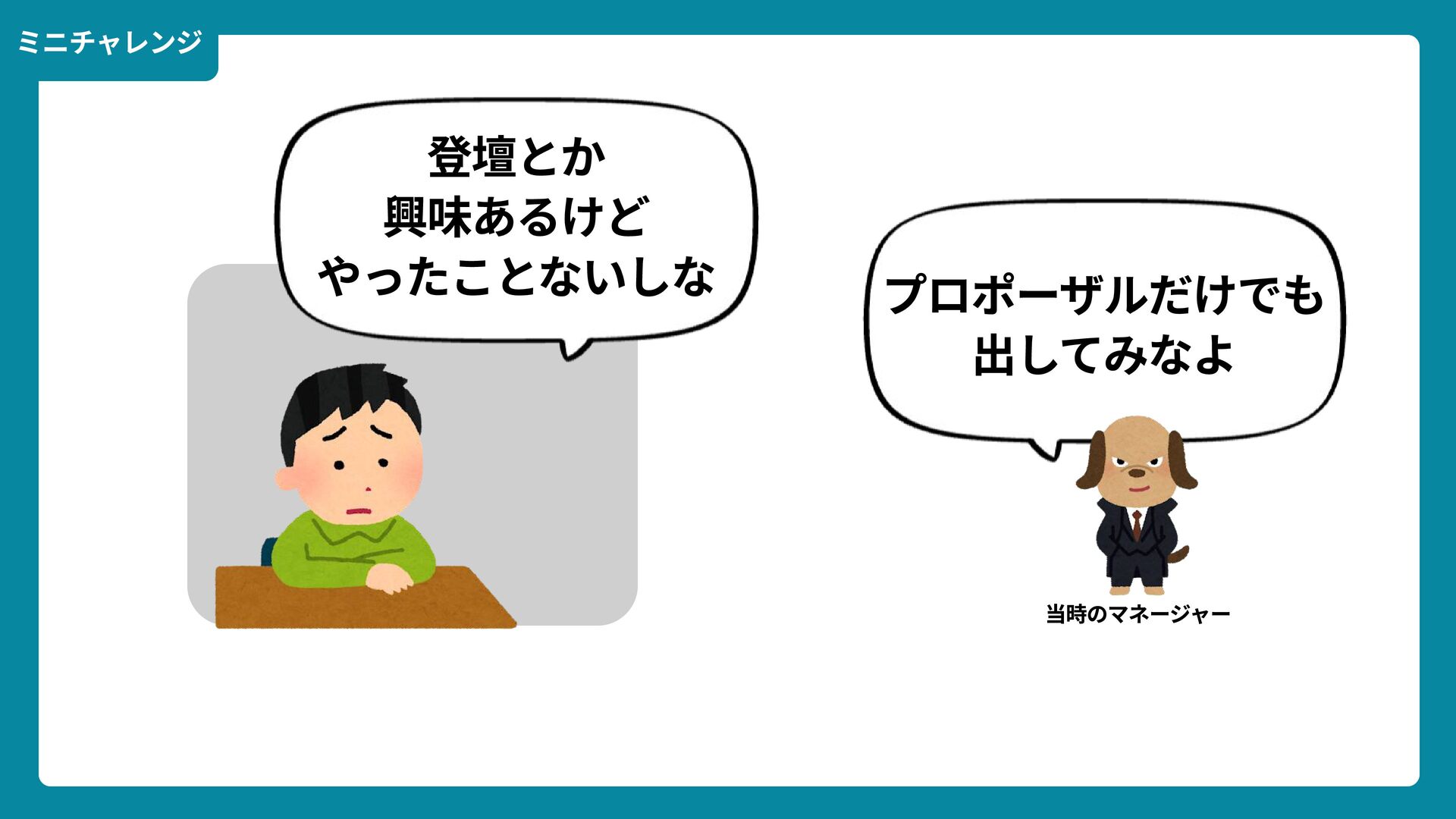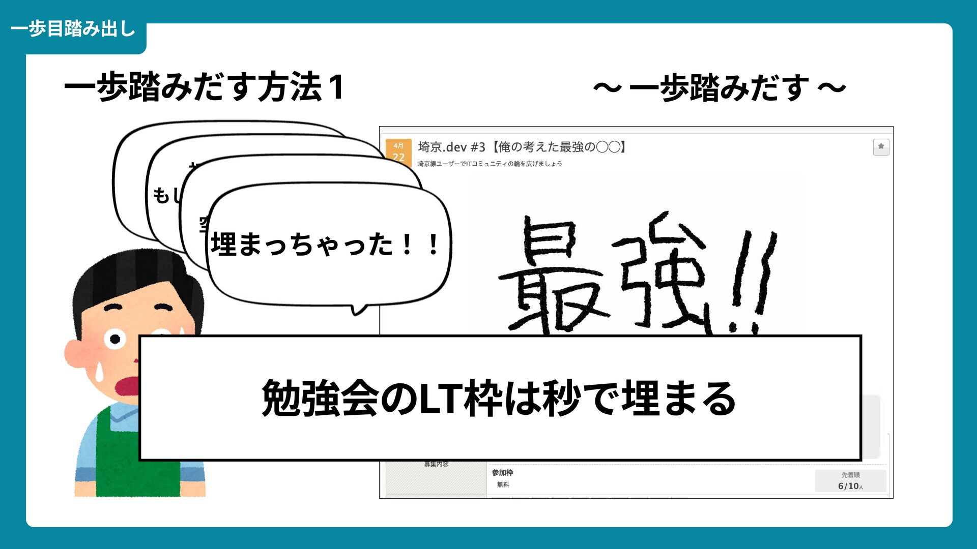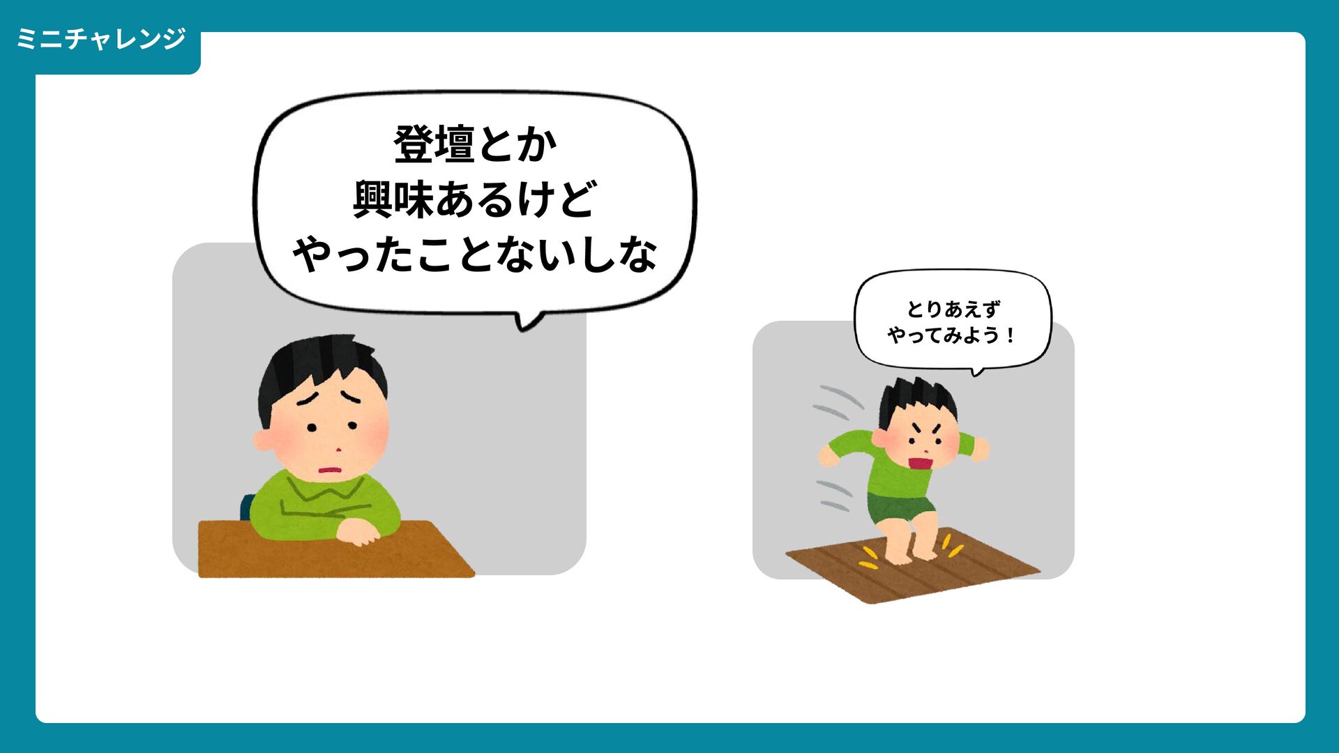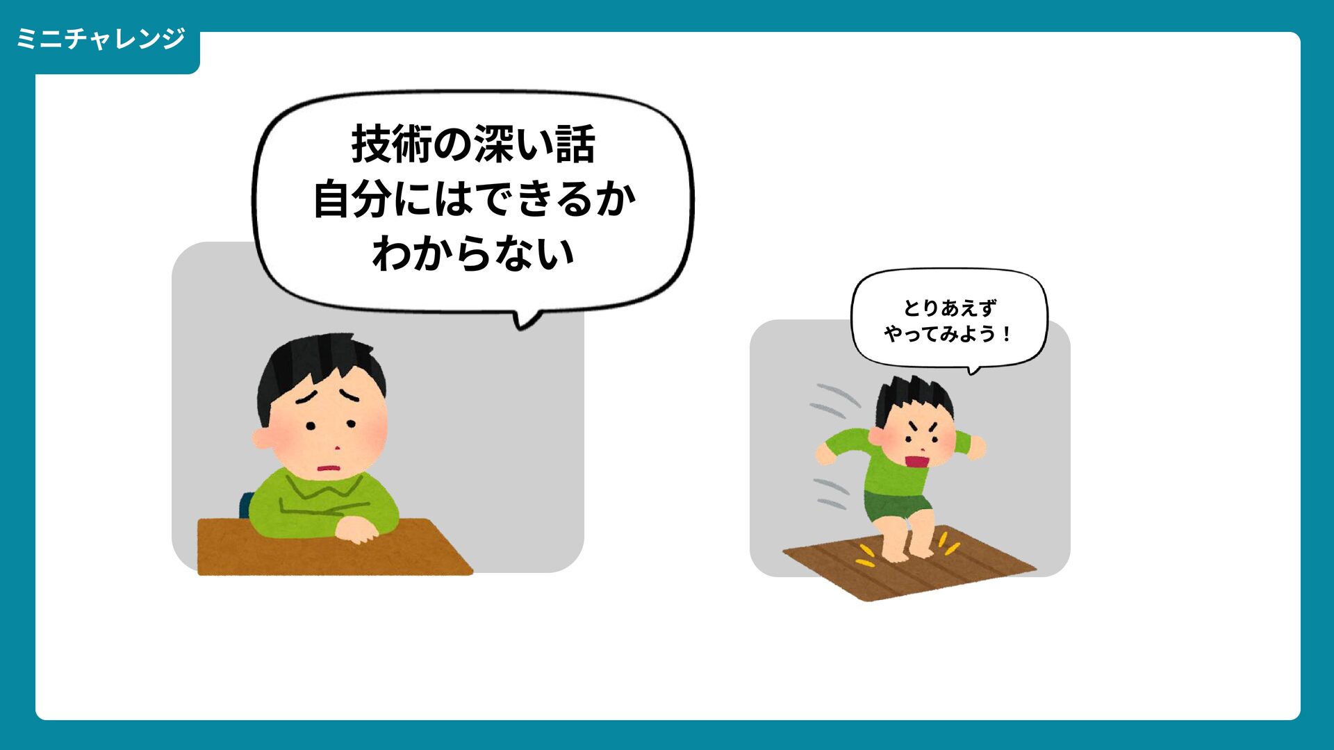 出典: Wikimedia Commons https://commons.wikimedia.org/wiki/File:Douglas_Engelbart_in_2008.jpg ライセンス: CC BY-SA 2.0 https://creativecommons.org/licenses/by-sa/2.0/ 一歩踏みだす方法 2 ダグラス・エンゲルバート氏 マウスの発明者 人が成熟する速度は その人がどれだけ恥に耐えられるかに比例する The rate at which a person can mature is directly proportional to the embarrassment he can tolerate.
