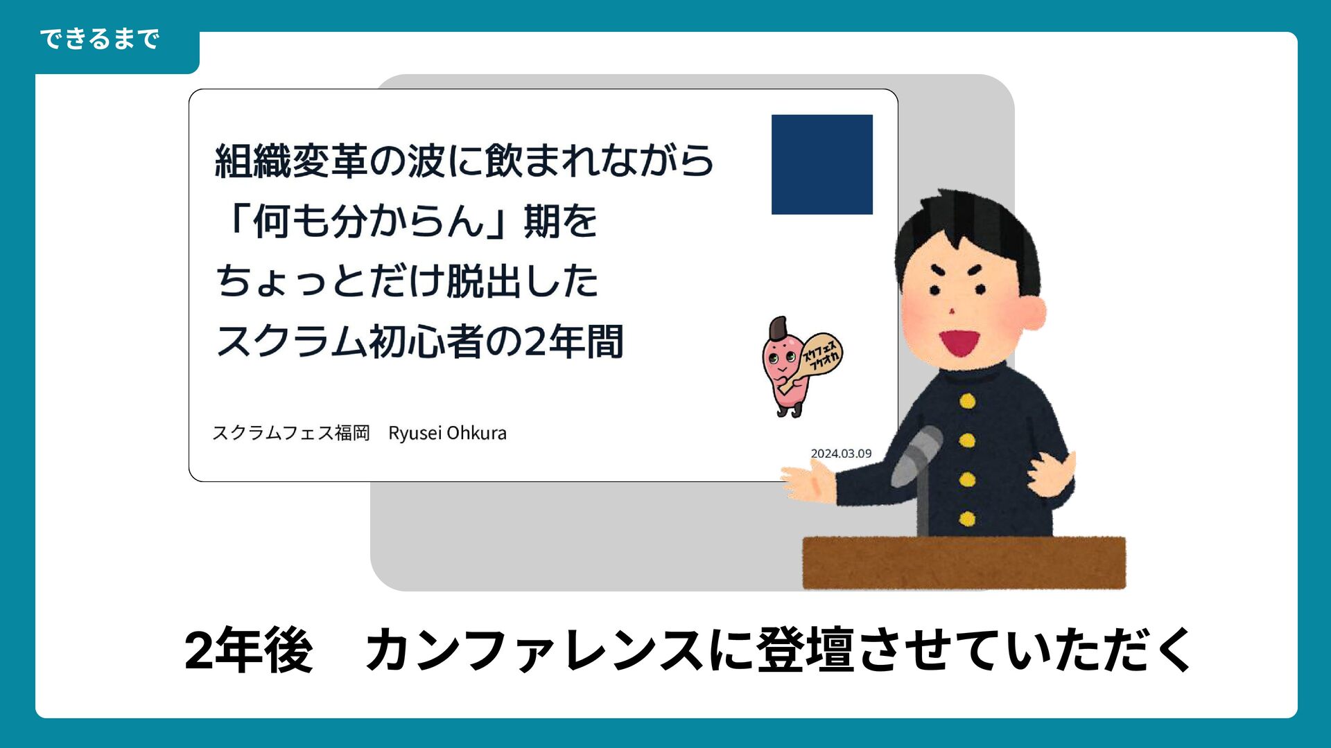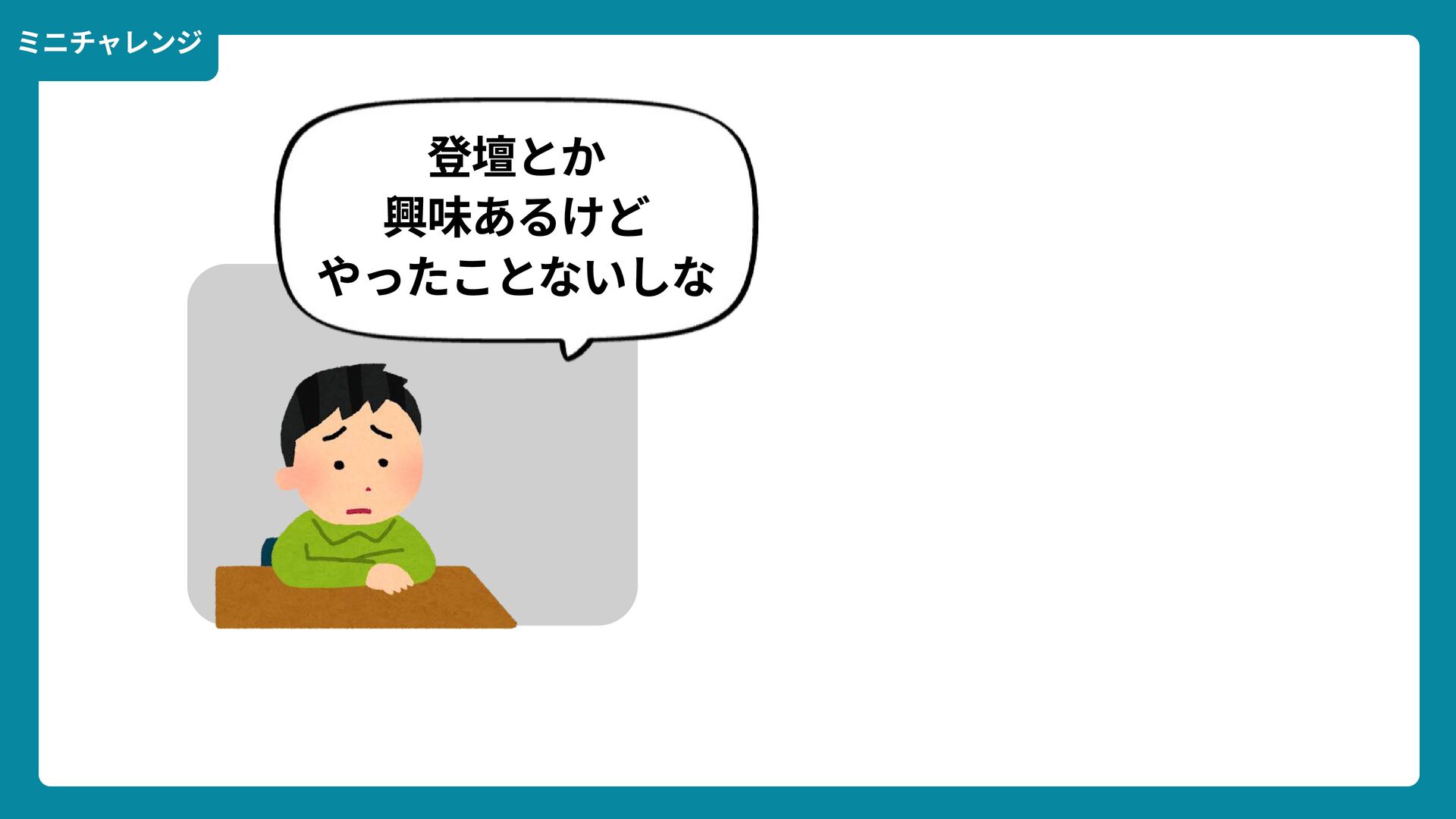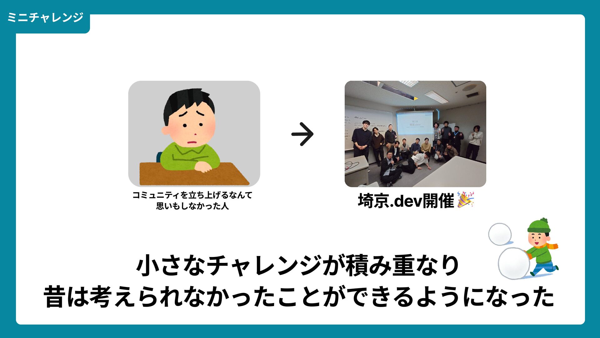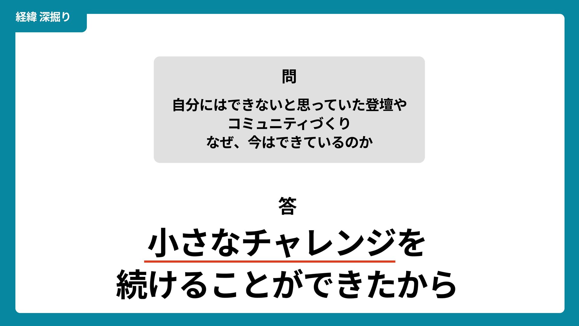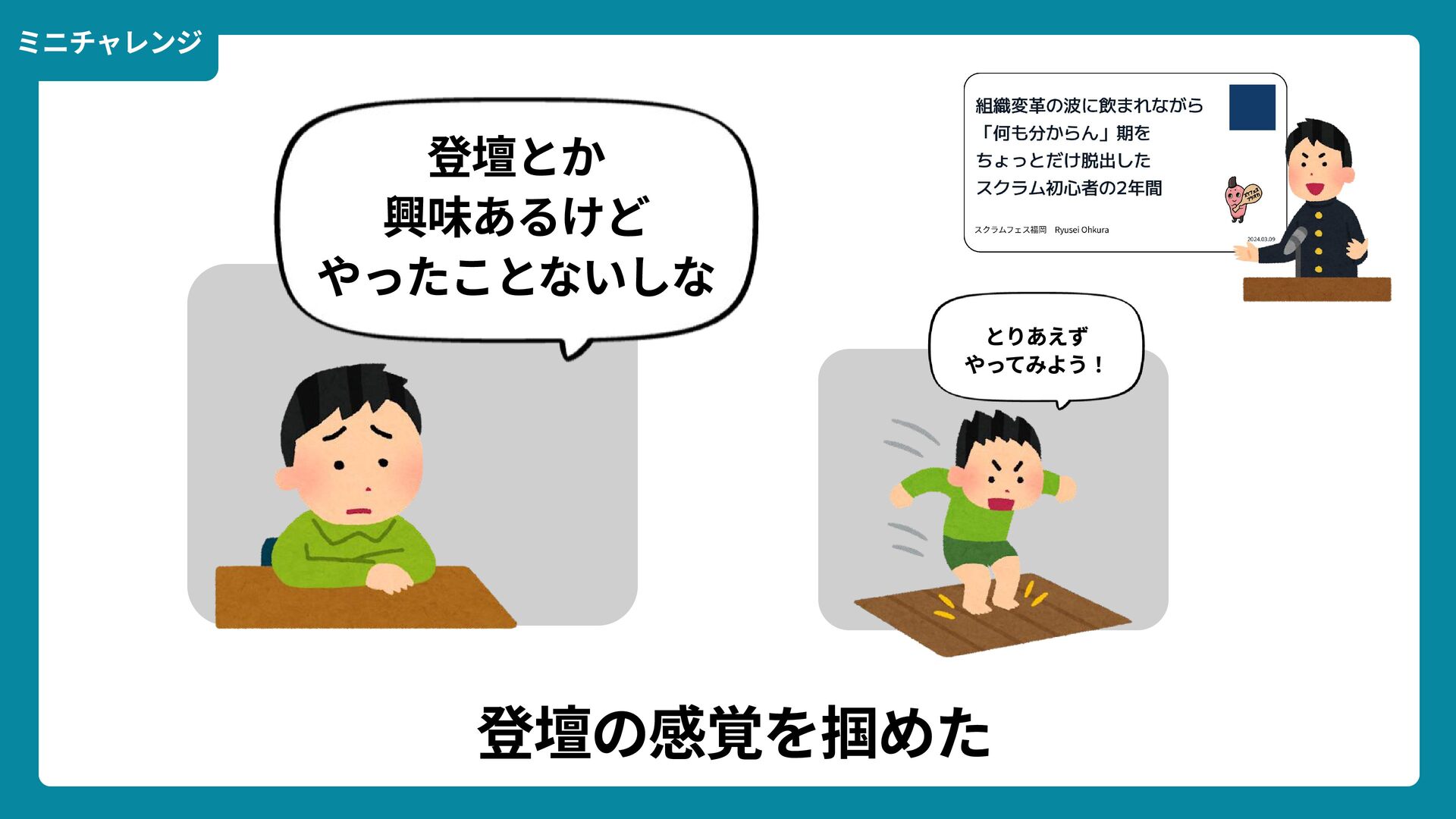 出典: Wikimedia Commons https://commons.wikimedia.org/wiki/File:Douglas_Engelbart_in_2008.jpg ライセンス: CC BY-SA 2.0 https://creativecommons.org/licenses/by-sa/2.0/ 一歩踏みだす方法 2 ダグラス・エンゲルバート氏 マウスの発明者 人が成熟する速度は その人がどれだけ恥に耐えられるかに比例する The rate at which a person can mature is directly proportional to the embarrassment he can tolerate.