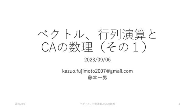 藤本⼀男 2023/9/6 ベクトル、⾏列演算とCAの数理 1