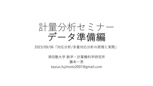計量分析セミナー データ準備編 2023/09/06「対応分析/多重対応分析の原理と実際」 津⽥塾⼤学 数学・計算機科学研究所 藤本⼀男
