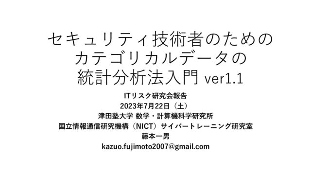 セキュリティに関連して調査などを⾏うと数値としては取得されないデータ(カテゴリカル・データ)の扱いが必須となります。