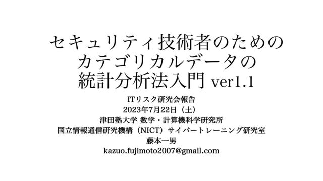 日本セキュリティマネジメント学会、ITリスク研究会での報告。(講演2)