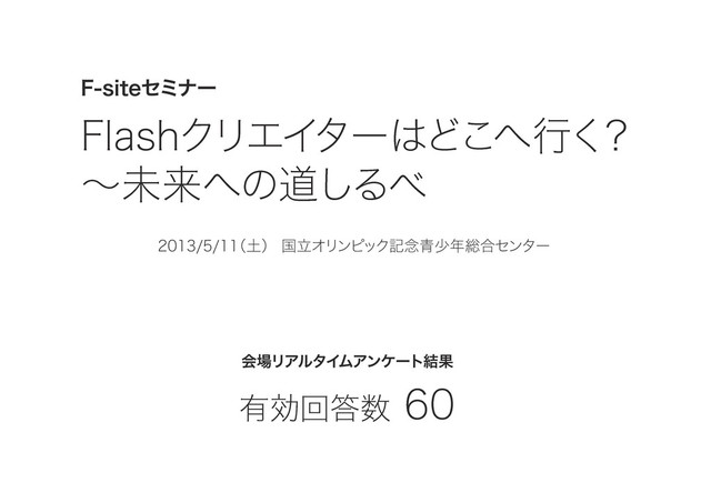 F-siteセミナー『Flashクリエイターはどこへ行く?~未来への道しるべ』で行われた会場リアルタイムアンケートの結果をまとめた資料です。