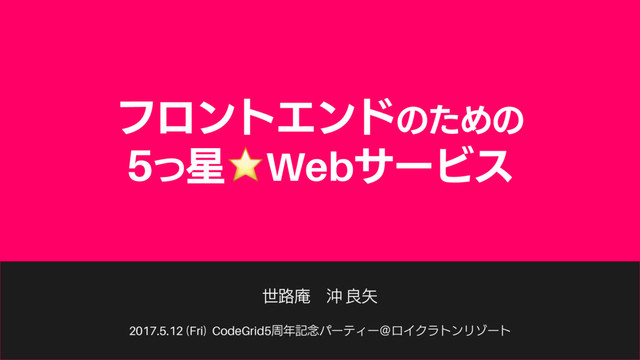 2017.5.12 (Fri) CodeGrid5पه೦ύʔςΟʔˏϩΠΫϥτϯϦκʔτ ϑϩϯτΤϯυͷͨΊͷ 5ͭ⭐WebαʔϏε ੈ࿏҇ ԭ ྑ