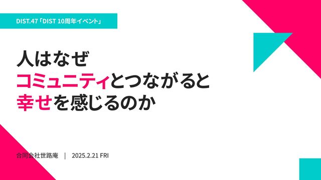 DIST.47 「DIST 10周年イベント」 人はなぜ とつながると を感じるのか コミュニティ 幸せ 合同会社世路庵 | 2025.2.21 FRI