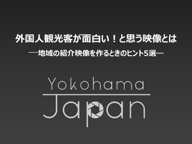 発表の目的 2 横浜市民放送局で、訪日外国人に向けた 横浜の紹介映像を制作。 ほかの地域で映像を制作する場合のヒントに なれば幸いです。 訪日外国人向け映像制作のヒント5選 1. 言語を使わずに楽しめる映像にして、拡散を狙う 2.
