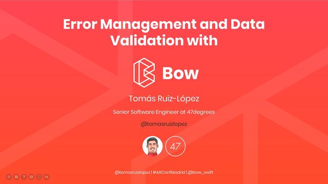 Nearly every iOS application has to handle errors and validate data of some kind. Swift provides some mechanisms like the recently introduced Result type, which enables a more functional way of dealing with errors. In this talk we will explore other data types that Bow provides to address this task and fail fast or error accumulation strategies.