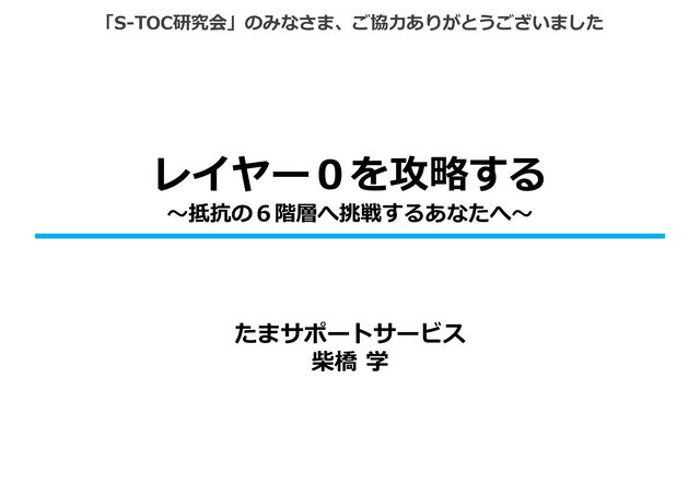 レイヤー0を攻略する ~抵抗の6階層へ挑戦するあなたへ~ たまサポートサービス 柴橋 学 「S-TOC研究会」のみなさま、ご協力ありがとうございました