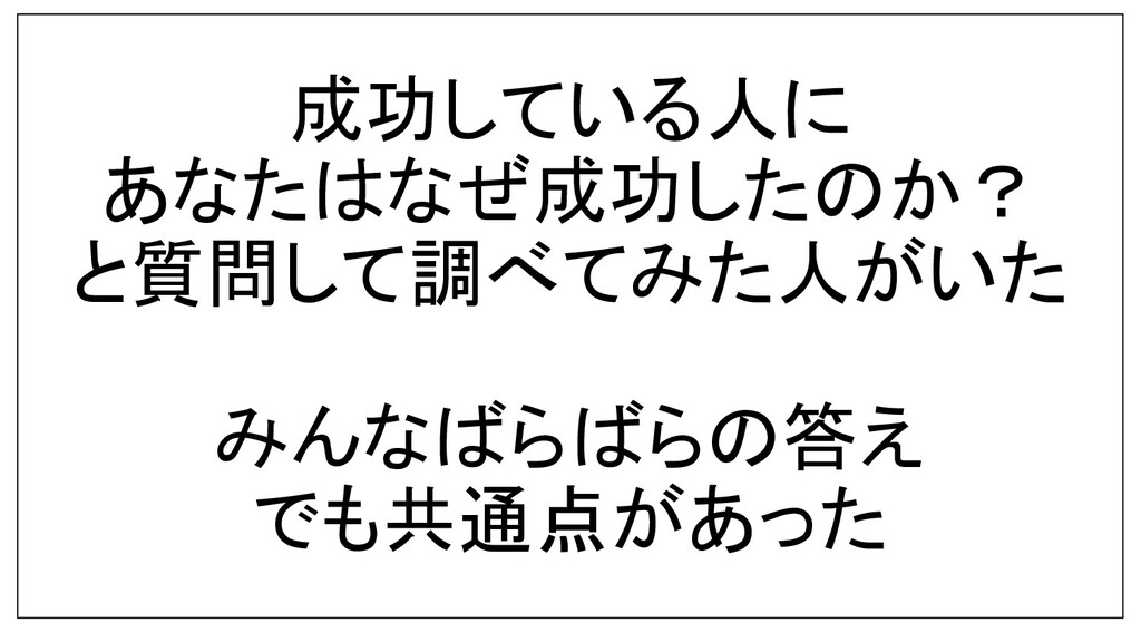 成功している人に あなたはなぜ成功したのか? と質問して調べてみた人がいた みんなばらばらの答え でも共通点があった