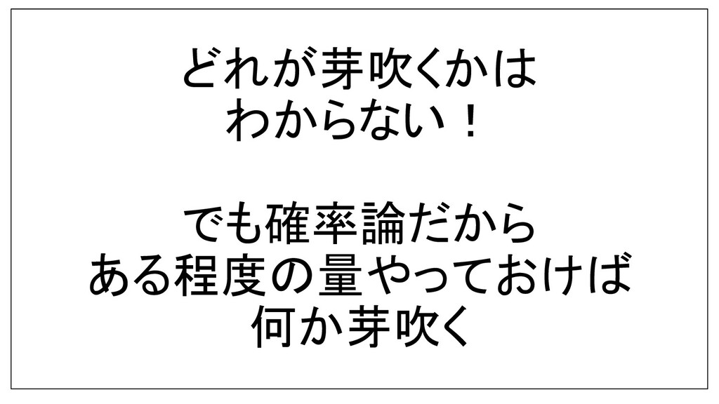 どれが芽吹くかは わからない! でも確率論だから ある程度の量やっておけば 何か芽吹く