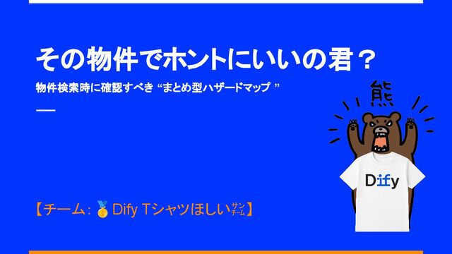その物件でホントにいいの君? 物件検索時に確認すべき “まとめ型ハザードマップ ” 【チーム:🥇Dify Tシャツほしい㌠】