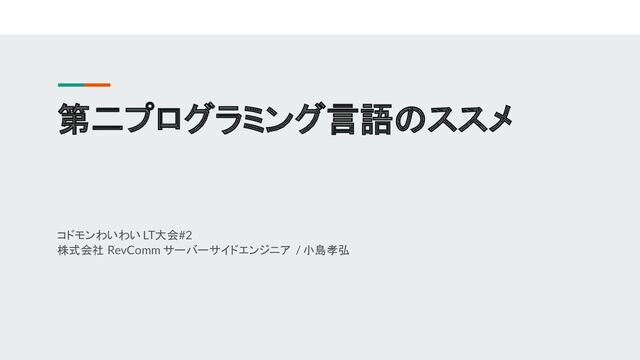 第二プログラミング言語のススメ コドモンわいわい LT大会#2 株式会社 RevComm サーバーサイドエンジニア / 小島孝弘