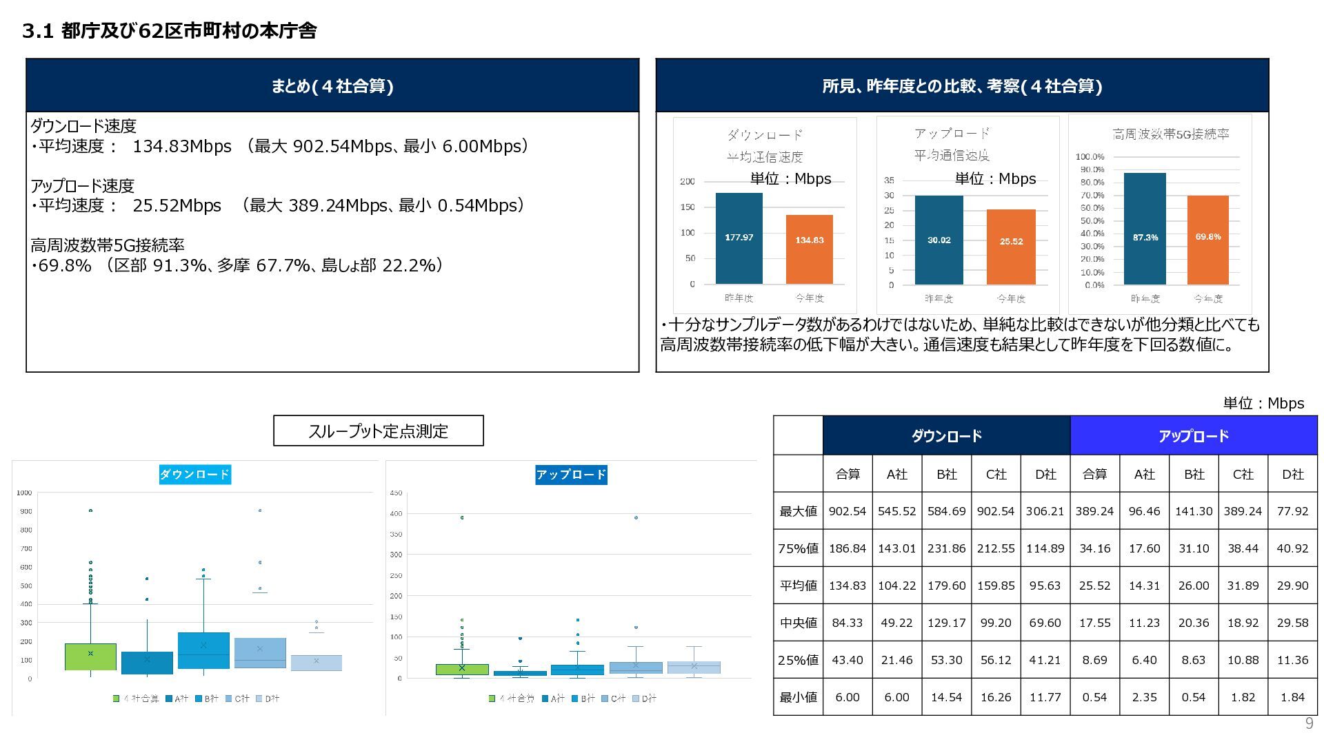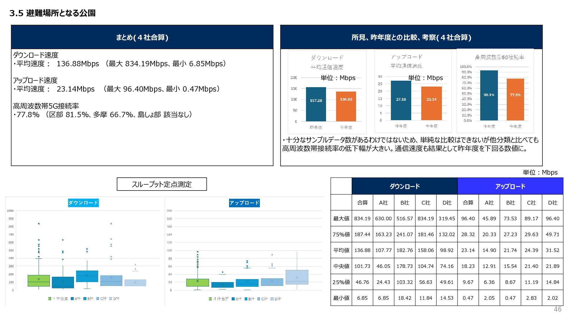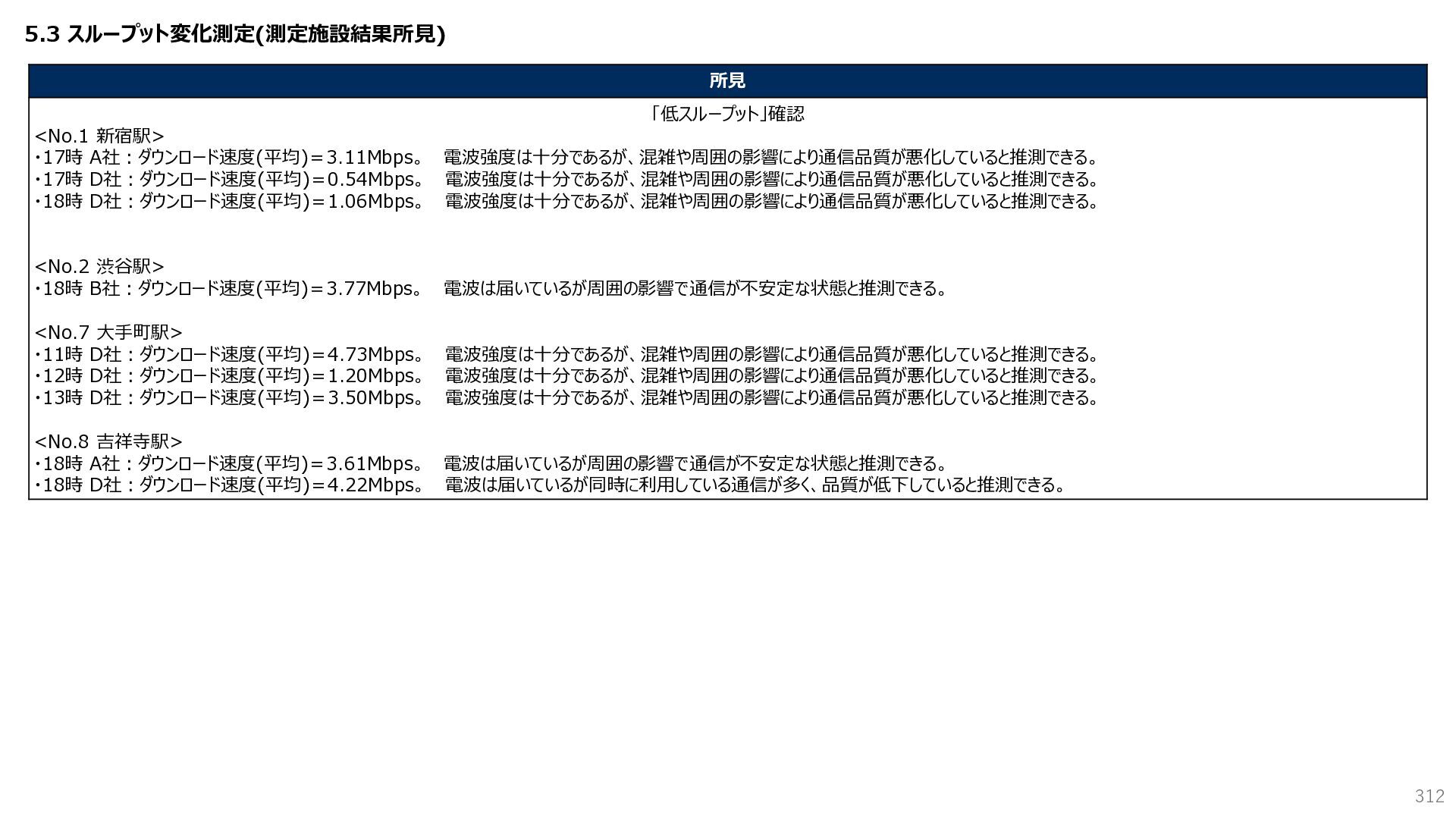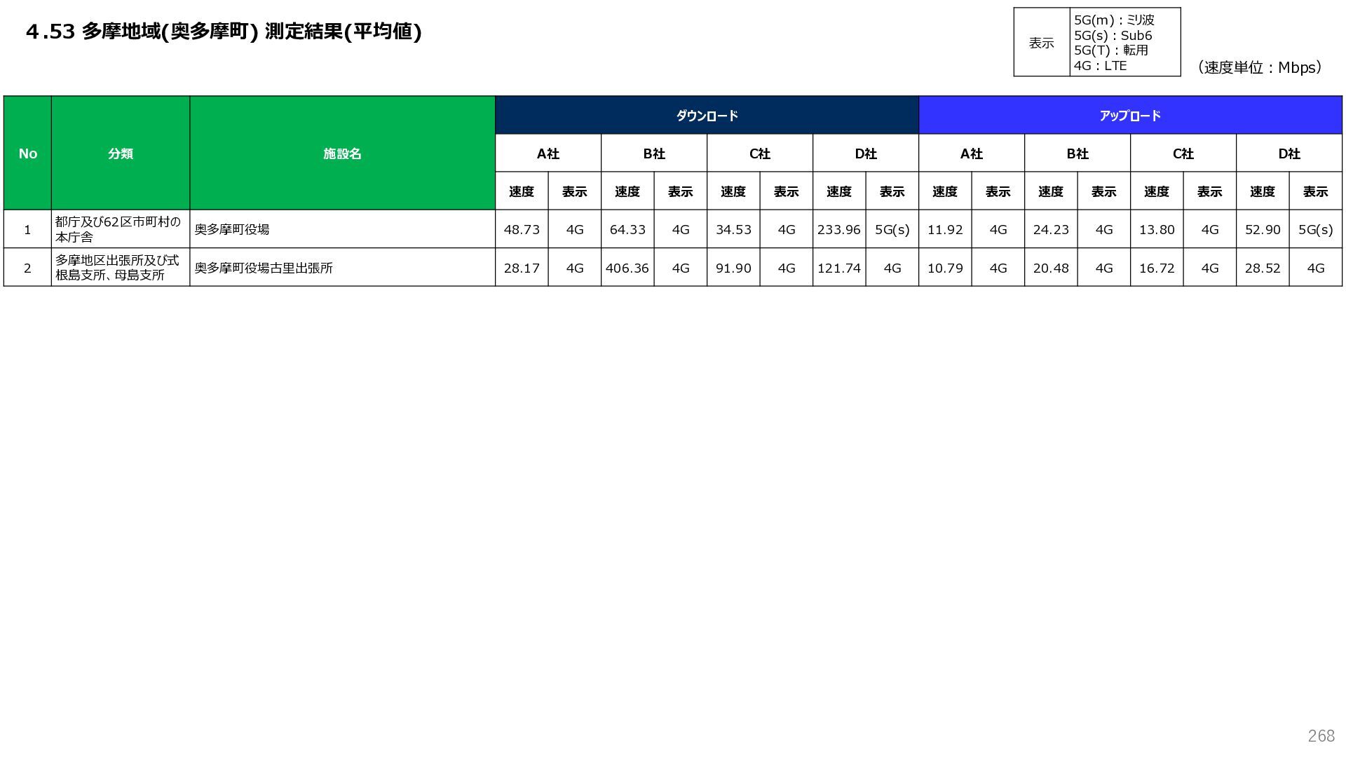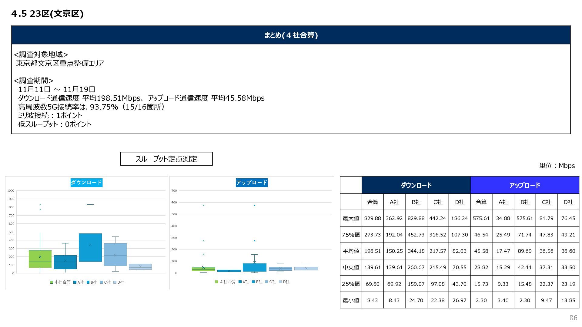No 分類 施設名 ダウンロード アップロード A社 B社 C社 D社 A社 B社 C社 D社 速度 表示 速度 表示 速度 表示 速度 表示 速度 表示 速度 表示 速度 表示 速度 表示 181 駅及び羽田空港 赤坂見附駅(A赤坂3丁目) 244.11 5G(s) 312.06 5G(s) 553.68 5G(s) 280.58 5G(s) 33.51 5G(s) 27.42 5G(s) 141.19 5G(s) 34.18 5G(s) 182 駅及び羽田空港 赤坂見附駅(出口11) 274.09 5G(s) 142.07 5G(s) 449.05 5G(s) 51.54 5G(s) 8.60 5G(s) 56.96 5G(s) 133.23 5G(s) 6.18 5G(s) 183 駅及び羽田空港 中野坂上駅(出口1) 93.93 5G(T) 413.57 5G(T) 122.56 5G(T) 334.71 5G(m) 4.40 5G(T) 30.20 5G(T) 18.98 5G(T) 61.05 5G(m) 184 駅及び羽田空港 中野坂上駅(出口A2) 10.50 5G(s) 345.78 5G(s) 117.08 5G(T) 107.31 5G(s) 10.16 5G(s) 61.12 5G(s) 9.13 5G(T) 86.43 5G(s) 185 駅及び羽田空港 馬喰横山駅(出口1) 854.65 5G(s) 108.89 5G(s) 232.08 5G(m) 63.27 5G(s) 21.22 5G(s) 24.17 5G(s) 51.05 5G(m) 17.94 5G(s) 186 駅及び羽田空港 馬喰横山駅(出口A3) 206.87 5G(s) 968.72 5G(s) 10.64 5G(s) 35.08 5G(s) 15.76 5G(s) 143.06 5G(s) 68.96 5G(s) 34.89 5G(s) 187 駅及び羽田空港 大塚駅(北口) 43.53 5G(T) 847.90 5G(s) 186.89 5G(T) 60.82 5G(s) 26.25 5G(T) 150.29 5G(s) 35.04 5G(T) 70.17 5G(s) 188 駅及び羽田空港 大塚駅(南口) 15.47 5G(T) 1173.87 5G(s) 109.80 5G(T) 87.14 5G(s) 25.79 5G(T) 476.11 5G(s) 15.45 5G(T) 39.40 5G(s) 189 駅及び羽田空港 溜池山王駅(出口11) 92.40 5G(s) 403.44 5G(s) 472.42 5G(s) 55.40 5G(s) 13.09 5G(s) 53.36 5G(s) 90.48 5G(s) 4.36 5G(s) 190 駅及び羽田空港 溜池山王駅(出口5) 505.11 5G(s) 172.57 5G(s) 219.49 5G(s) 158.24 5G(s) 52.33 5G(s) 17.32 5G(s) 94.70 5G(s) 30.15 5G(s) 191 駅及び羽田空港 両国駅(東口) 302.46 5G(s) 125.33 5G(s) 69.06 5G(T) 57.41 5G(s) 8.65 5G(s) 29.32 5G(s) 34.20 5G(T) 17.95 5G(s) 192 駅及び羽田空港 両国駅(西口) 23.52 5G(s) 298.77 5G(s) 93.29 5G(T) 122.09 5G(s) 3.72 5G(s) 62.49 5G(s) 40.80 5G(T) 35.44 5G(s) 193 駅及び羽田空港 明治神宮前駅(4) 245.03 5G(s) 654.16 5G(m) 25.81 5G(T) 67.27 5G(s) 17.16 5G(s) 129.38 5G(m) 33.04 5G(T) 7.55 5G(s) 194 駅及び羽田空港 明治神宮前駅(1) 297.55 5G(s) 585.23 5G(m) 394.00 5G(s) 147.79 5G(s) 34.34 5G(s) 246.05 5G(m) 56.49 5G(s) 9.69 5G(s) 195 駅及び羽田空港 明大前駅(中央口) 244.72 5G(s) 41.49 4G 179.86 5G(T) 90.30 5G(s) 37.01 5G(s) 3.05 4G 37.59 5G(T) 41.14 5G(s) 196 駅及び羽田空港 明大前駅(フレンテ口) 77.75 5G(s) 359.64 5G(s) 140.30 5G(T) 83.94 5G(s) 42.60 5G(s) 60.21 5G(s) 30.28 5G(T) 45.83 5G(s) 197 駅及び羽田空港 東中野駅(西口) 39.24 5G(T) 233.33 5G(T) 193.21 5G(T) 70.45 5G(s) 29.19 5G(T) 60.83 5G(T) 13.88 5G(T) 55.17 5G(s) 198 駅及び羽田空港 東中野駅(東口) 46.14 5G(T) 119.89 4G 248.33 5G(s) 36.70 4G 34.95 5G(T) 14.32 4G 30.22 5G(s) 51.07 4G 199 駅及び羽田空港 虎ノ門駅(B2) 212.89 5G(s) 95.53 5G(s) 456.84 5G(s) 84.28 5G(s) 18.76 5G(s) 19.05 5G(s) 55.94 5G(s) 6.59 5G(s) 200 駅及び羽田空港 虎ノ門駅(5) 153.89 5G(s) 467.33 5G(s) 274.51 5G(T) 169.44 5G(s) 24.37 5G(s) 61.55 5G(s) 41.85 5G(T) 70.61 5G(s)