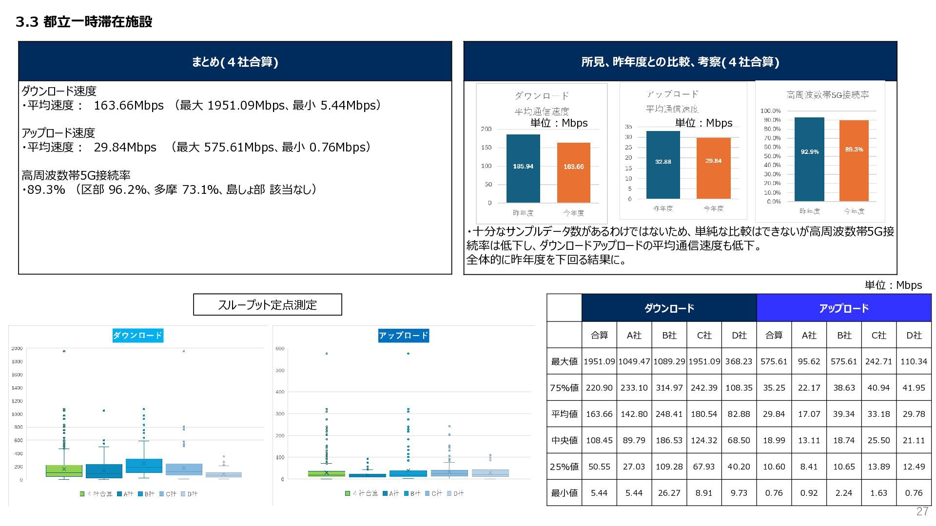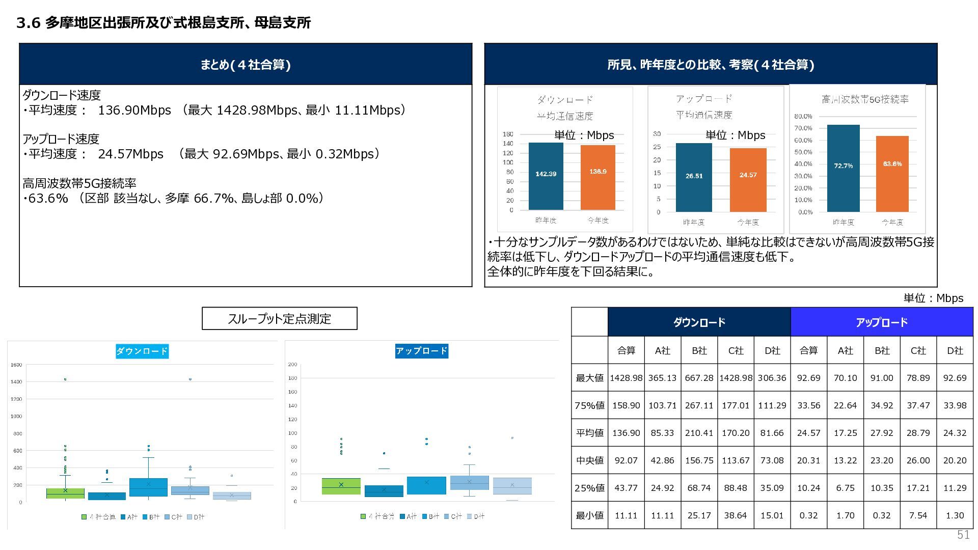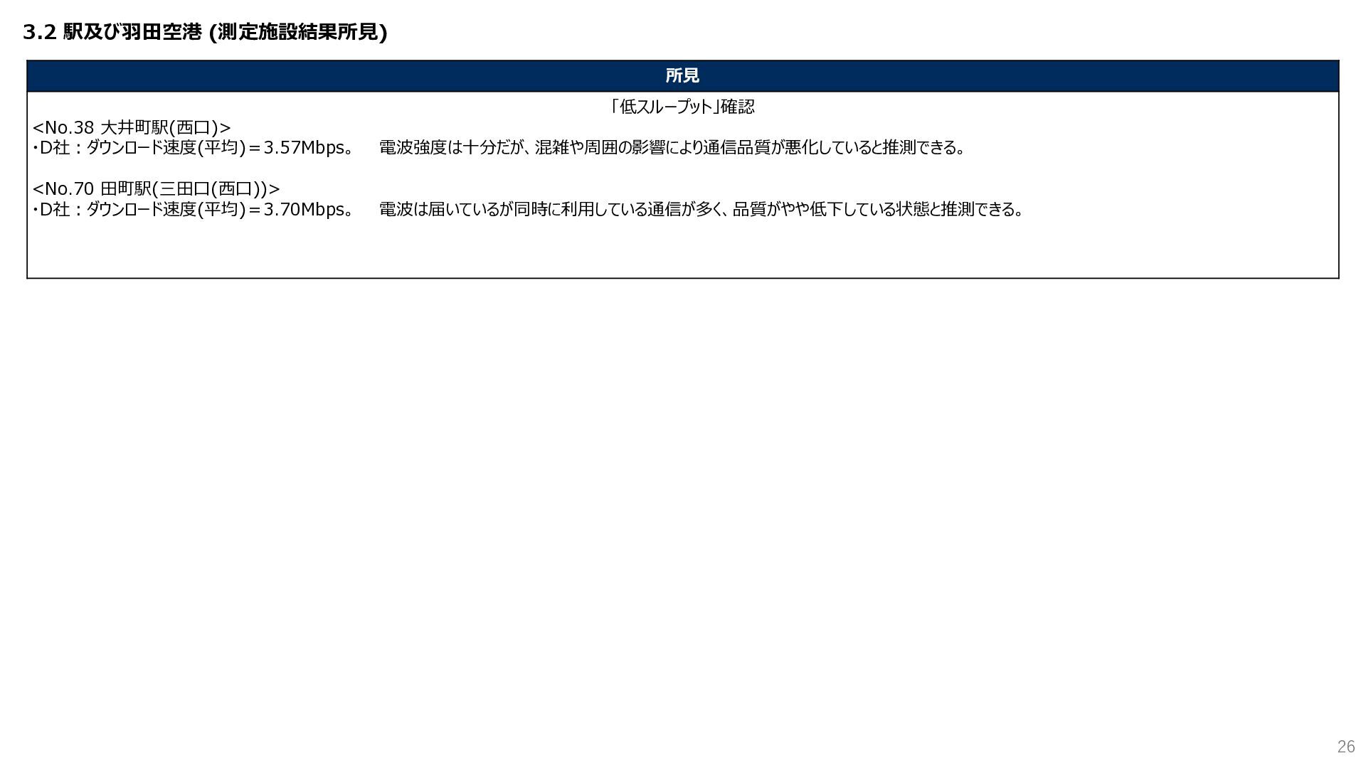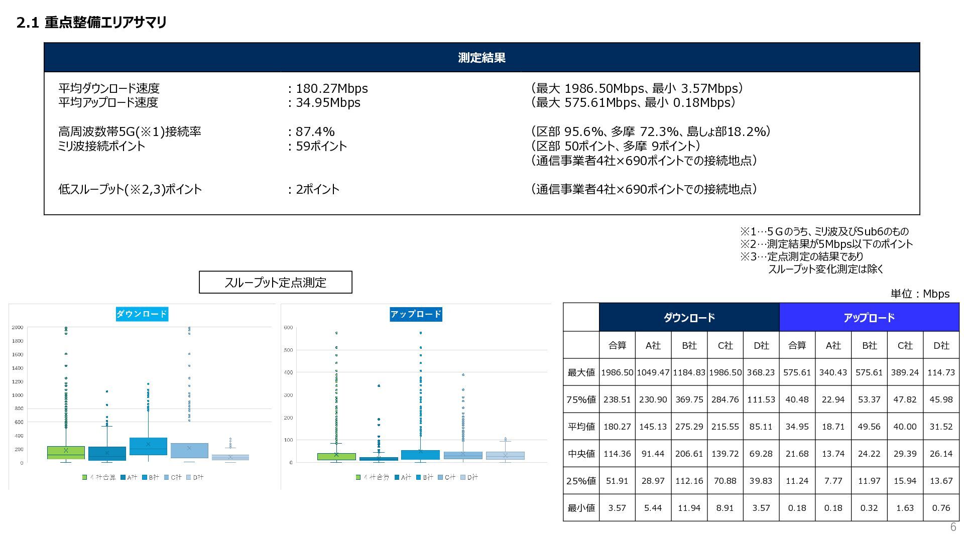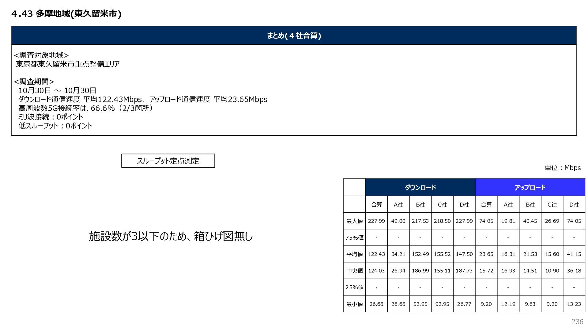 No 分類 施設名 ダウンロード アップロード A社 B社 C社 D社 A社 B社 C社 D社 速度 表示 速度 表示 速度 表示 速度 表示 速度 表示 速度 表示 速度 表示 速度 表示 181 駅及び羽田空港 赤坂見附駅(A赤坂3丁目) 244.11 5G(s) 312.06 5G(s) 553.68 5G(s) 280.58 5G(s) 33.51 5G(s) 27.42 5G(s) 141.19 5G(s) 34.18 5G(s) 182 駅及び羽田空港 赤坂見附駅(出口11) 274.09 5G(s) 142.07 5G(s) 449.05 5G(s) 51.54 5G(s) 8.60 5G(s) 56.96 5G(s) 133.23 5G(s) 6.18 5G(s) 183 駅及び羽田空港 中野坂上駅(出口1) 93.93 5G(T) 413.57 5G(T) 122.56 5G(T) 334.71 5G(m) 4.40 5G(T) 30.20 5G(T) 18.98 5G(T) 61.05 5G(m) 184 駅及び羽田空港 中野坂上駅(出口A2) 10.50 5G(s) 345.78 5G(s) 117.08 5G(T) 107.31 5G(s) 10.16 5G(s) 61.12 5G(s) 9.13 5G(T) 86.43 5G(s) 185 駅及び羽田空港 馬喰横山駅(出口1) 854.65 5G(s) 108.89 5G(s) 232.08 5G(m) 63.27 5G(s) 21.22 5G(s) 24.17 5G(s) 51.05 5G(m) 17.94 5G(s) 186 駅及び羽田空港 馬喰横山駅(出口A3) 206.87 5G(s) 968.72 5G(s) 10.64 5G(s) 35.08 5G(s) 15.76 5G(s) 143.06 5G(s) 68.96 5G(s) 34.89 5G(s) 187 駅及び羽田空港 大塚駅(北口) 43.53 5G(T) 847.90 5G(s) 186.89 5G(T) 60.82 5G(s) 26.25 5G(T) 150.29 5G(s) 35.04 5G(T) 70.17 5G(s) 188 駅及び羽田空港 大塚駅(南口) 15.47 5G(T) 1173.87 5G(s) 109.80 5G(T) 87.14 5G(s) 25.79 5G(T) 476.11 5G(s) 15.45 5G(T) 39.40 5G(s) 189 駅及び羽田空港 溜池山王駅(出口11) 92.40 5G(s) 403.44 5G(s) 472.42 5G(s) 55.40 5G(s) 13.09 5G(s) 53.36 5G(s) 90.48 5G(s) 4.36 5G(s) 190 駅及び羽田空港 溜池山王駅(出口5) 505.11 5G(s) 172.57 5G(s) 219.49 5G(s) 158.24 5G(s) 52.33 5G(s) 17.32 5G(s) 94.70 5G(s) 30.15 5G(s) 191 駅及び羽田空港 両国駅(東口) 302.46 5G(s) 125.33 5G(s) 69.06 5G(T) 57.41 5G(s) 8.65 5G(s) 29.32 5G(s) 34.20 5G(T) 17.95 5G(s) 192 駅及び羽田空港 両国駅(西口) 23.52 5G(s) 298.77 5G(s) 93.29 5G(T) 122.09 5G(s) 3.72 5G(s) 62.49 5G(s) 40.80 5G(T) 35.44 5G(s) 193 駅及び羽田空港 明治神宮前駅(4) 245.03 5G(s) 654.16 5G(m) 25.81 5G(T) 67.27 5G(s) 17.16 5G(s) 129.38 5G(m) 33.04 5G(T) 7.55 5G(s) 194 駅及び羽田空港 明治神宮前駅(1) 297.55 5G(s) 585.23 5G(m) 394.00 5G(s) 147.79 5G(s) 34.34 5G(s) 246.05 5G(m) 56.49 5G(s) 9.69 5G(s) 195 駅及び羽田空港 明大前駅(中央口) 244.72 5G(s) 41.49 4G 179.86 5G(T) 90.30 5G(s) 37.01 5G(s) 3.05 4G 37.59 5G(T) 41.14 5G(s) 196 駅及び羽田空港 明大前駅(フレンテ口) 77.75 5G(s) 359.64 5G(s) 140.30 5G(T) 83.94 5G(s) 42.60 5G(s) 60.21 5G(s) 30.28 5G(T) 45.83 5G(s) 197 駅及び羽田空港 東中野駅(西口) 39.24 5G(T) 233.33 5G(T) 193.21 5G(T) 70.45 5G(s) 29.19 5G(T) 60.83 5G(T) 13.88 5G(T) 55.17 5G(s) 198 駅及び羽田空港 東中野駅(東口) 46.14 5G(T) 119.89 4G 248.33 5G(s) 36.70 4G 34.95 5G(T) 14.32 4G 30.22 5G(s) 51.07 4G 199 駅及び羽田空港 虎ノ門駅(B2) 212.89 5G(s) 95.53 5G(s) 456.84 5G(s) 84.28 5G(s) 18.76 5G(s) 19.05 5G(s) 55.94 5G(s) 6.59 5G(s) 200 駅及び羽田空港 虎ノ門駅(5) 153.89 5G(s) 467.33 5G(s) 274.51 5G(T) 169.44 5G(s) 24.37 5G(s) 61.55 5G(s) 41.85 5G(T) 70.61 5G(s)