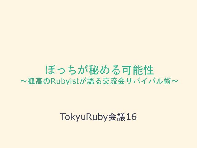 ぼっちが秘める可能性 〜孤高のRubyistが語る交流会サバイバル術〜 TokyuRuby会議16