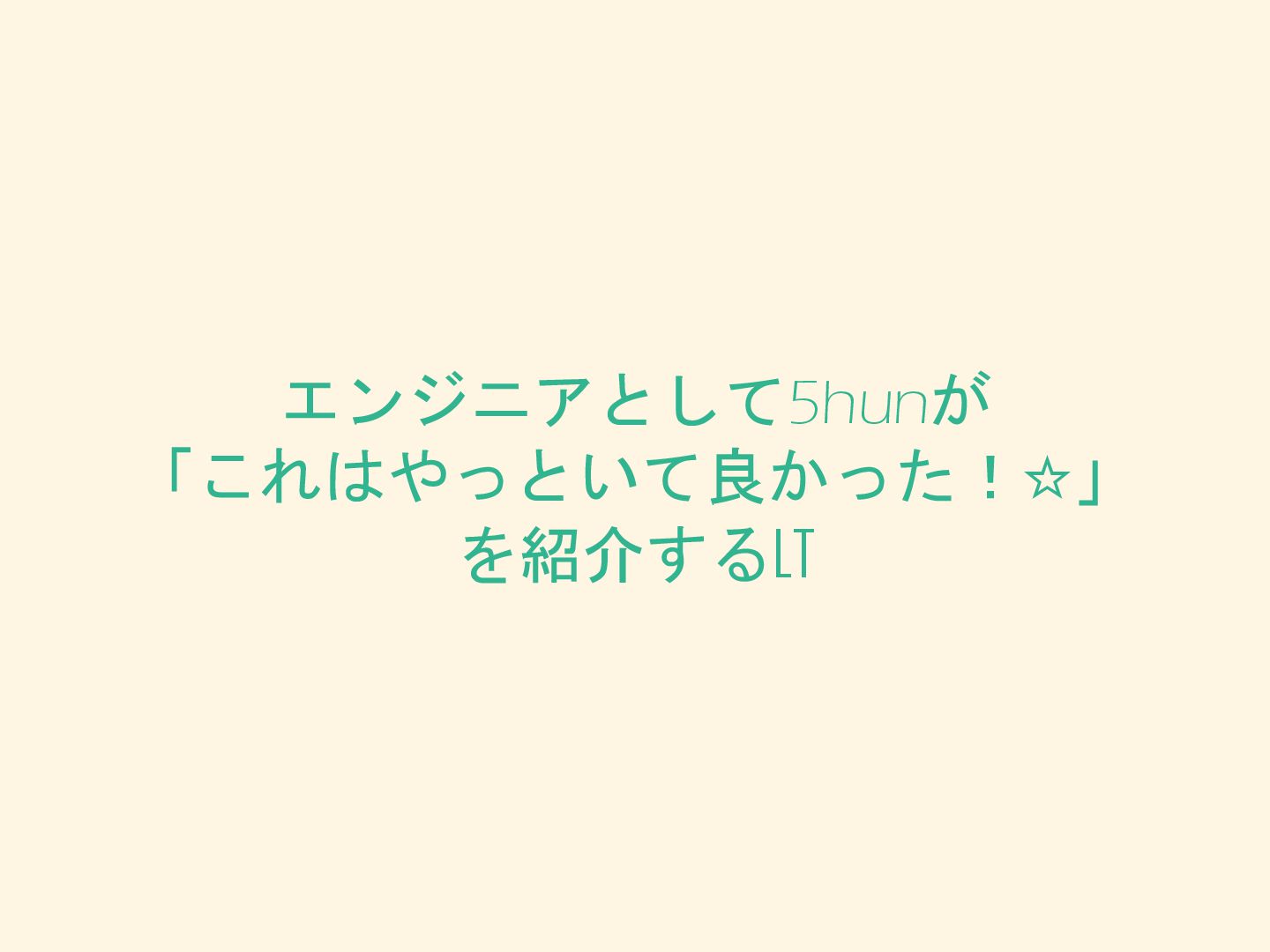 エンジニアとして5hunが 「これはやっといて良かった!☆」 を紹介するLT