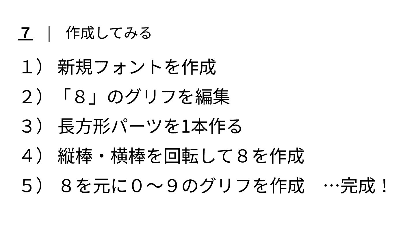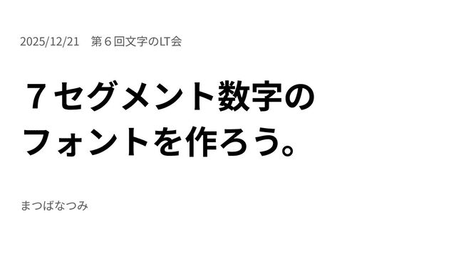 2025/12/21 第6回 文字のLT会で 発表した 「7セグメント数字の フォントを作ろう。」のスライドです。