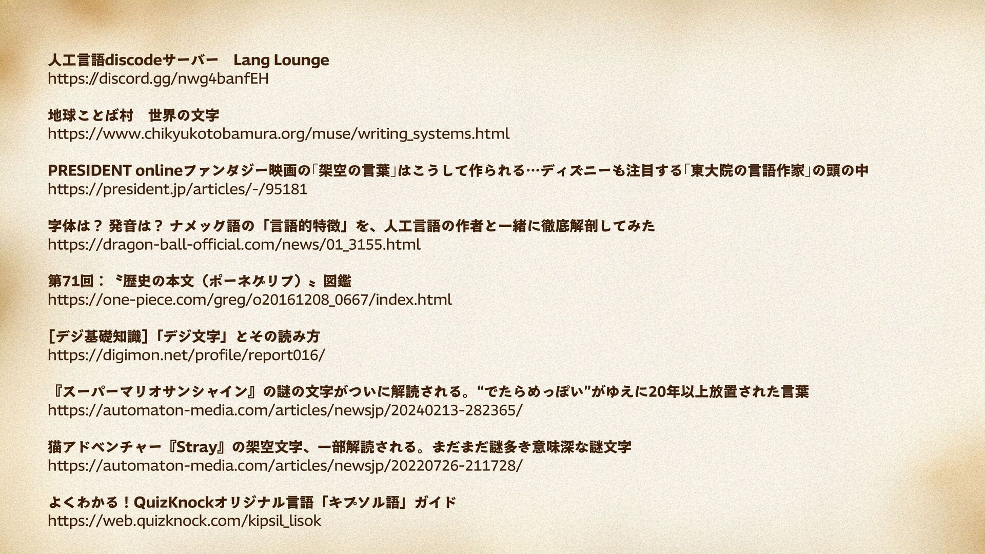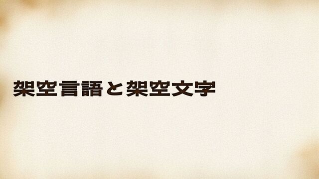 2025/06/01 第5回 文字のLT会で 発表した 「架空言語・架空文字」のスライドです。
