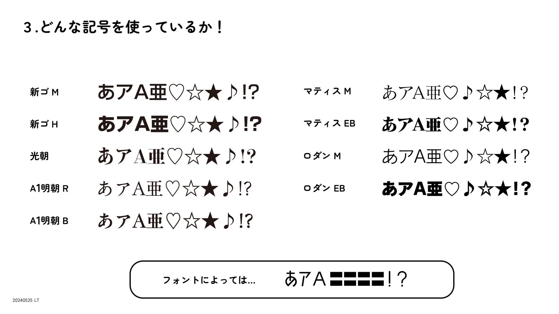 2024/05/25 第3回 文字のLT会で発表したスライドです。