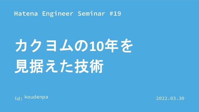Hatena Engineer Seminar #19 カクヨム編 の資料です。 https://hatena.connpass.com/event/241412/