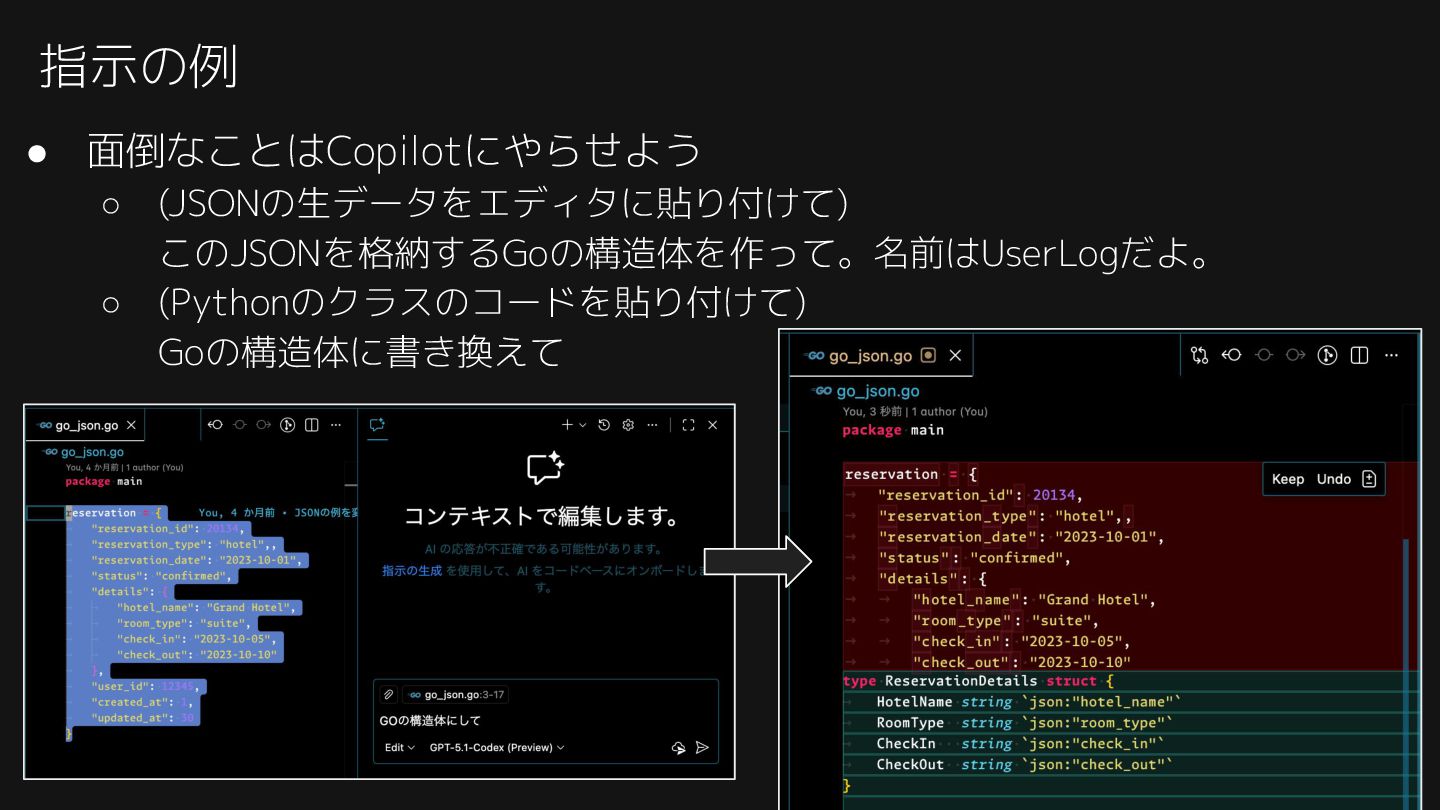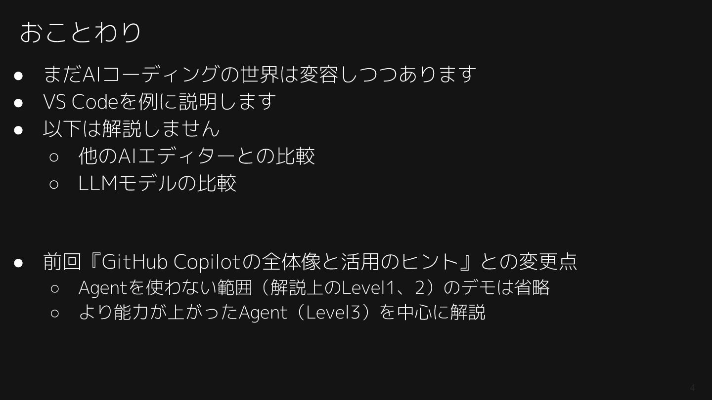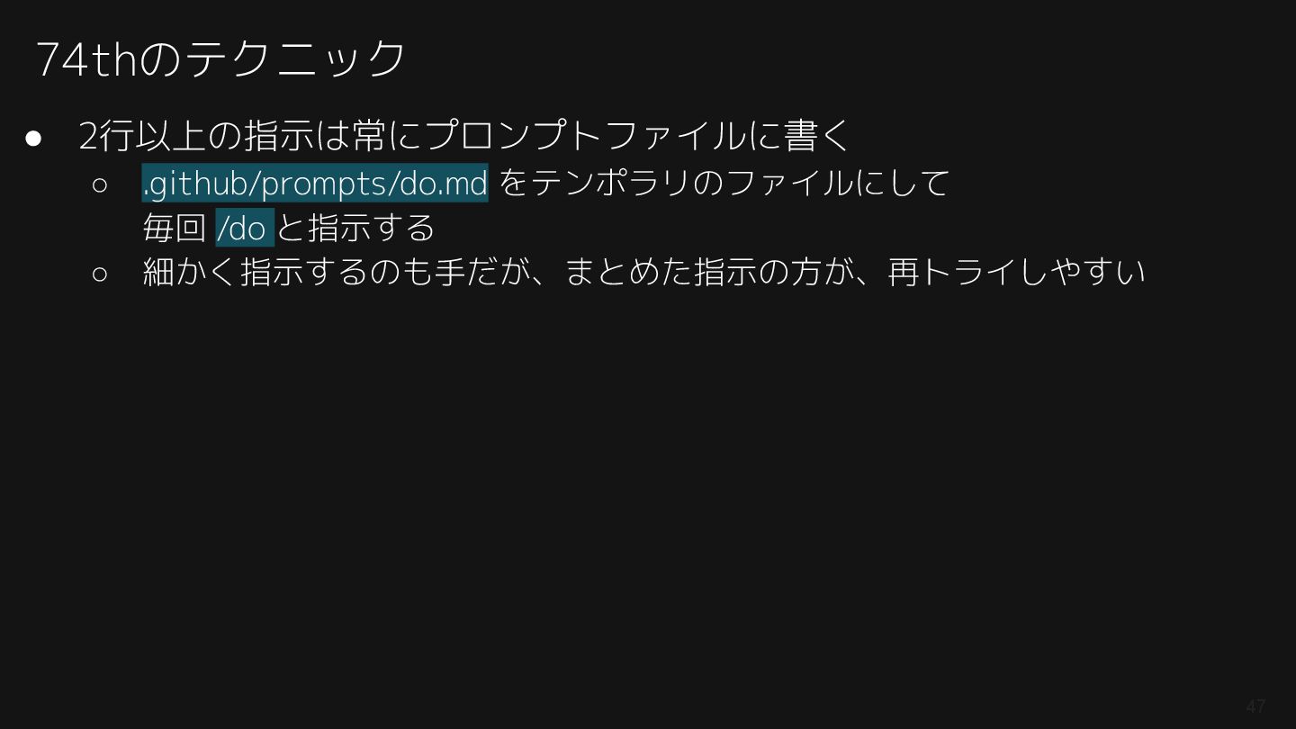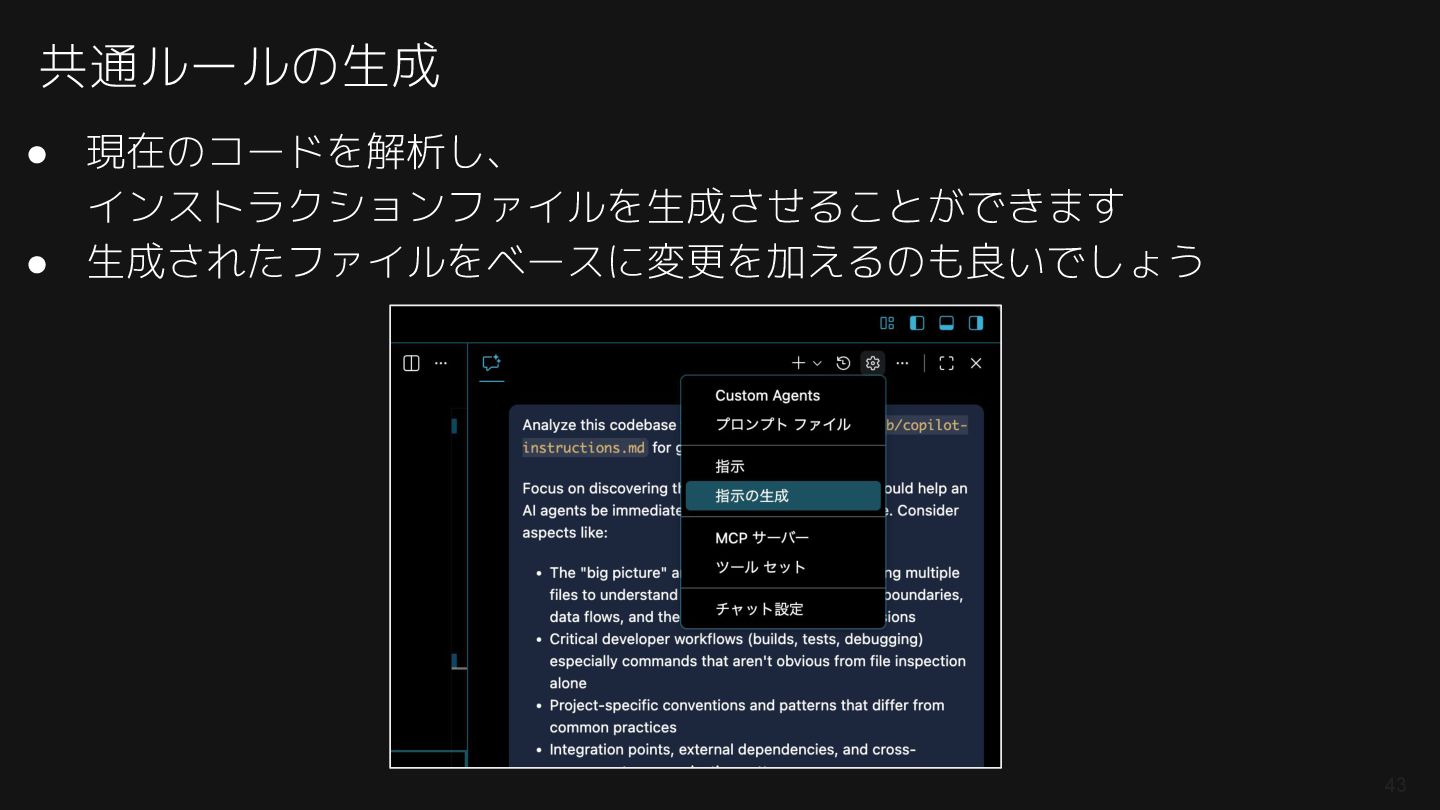 紹介したAGENTS.md: https://github.com/74th/event-githubcopilot-findy-2512-on-vscode/blob/main/004-agent_with_context/AGENTS.md